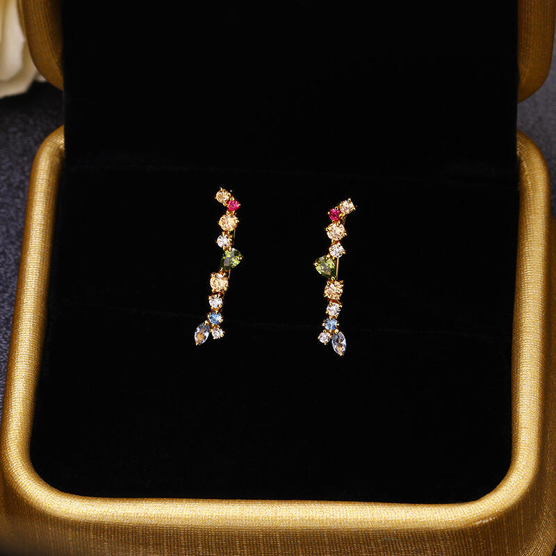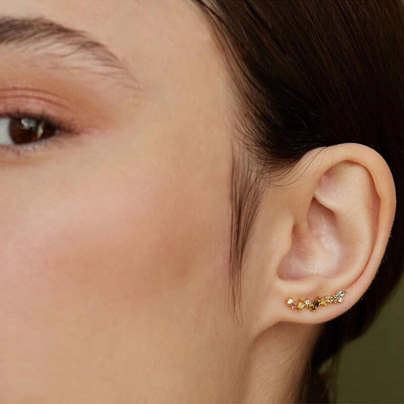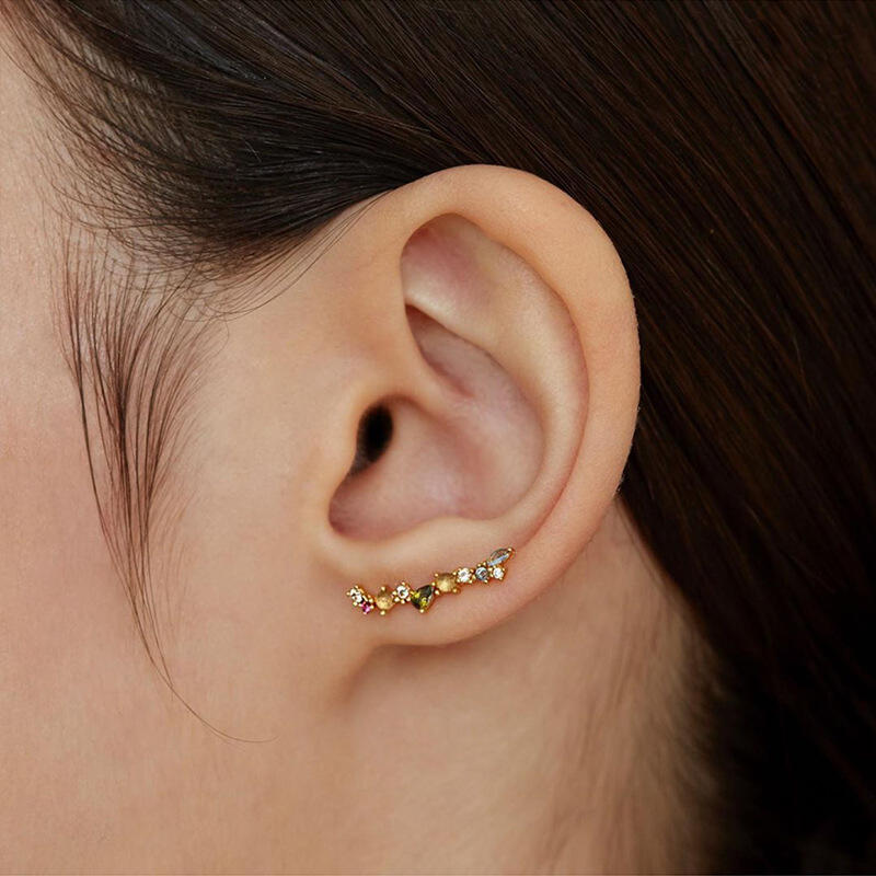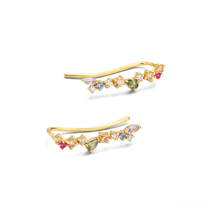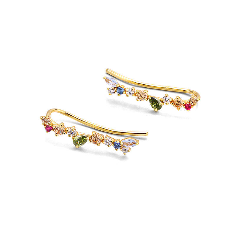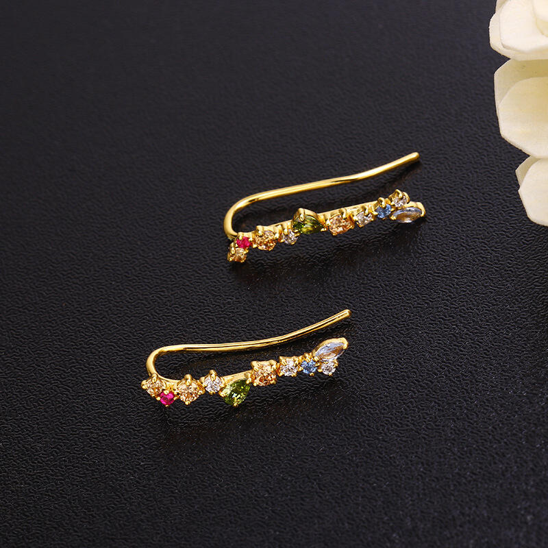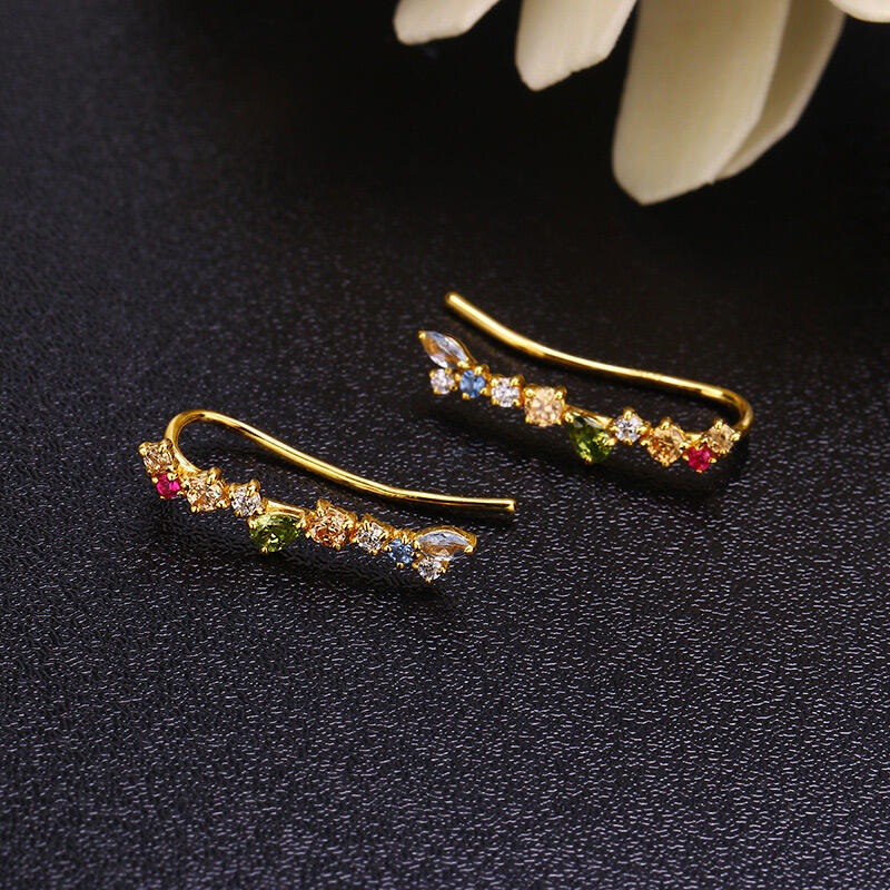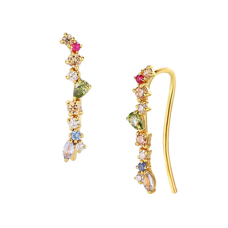 Sparkle in these gorgeous sterling silver multicolored climber earrings. The rainbow trend is about making a stylish statement by injecting color into your jewelry collection. Dotted with bright and colorful stones, they are the perfect way to jazz up any outfit and are so easy and comfortable to wear.