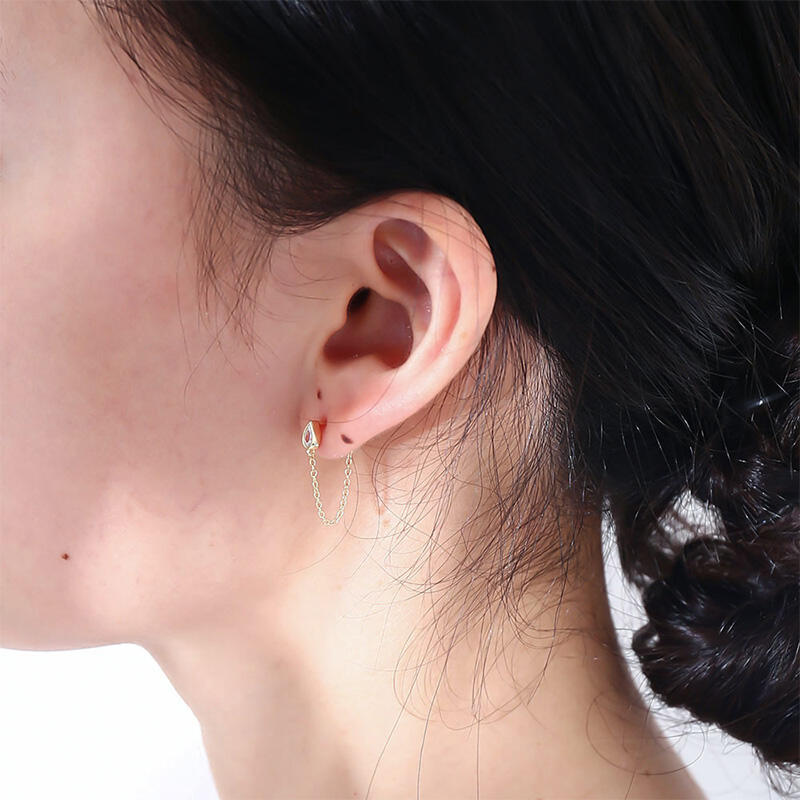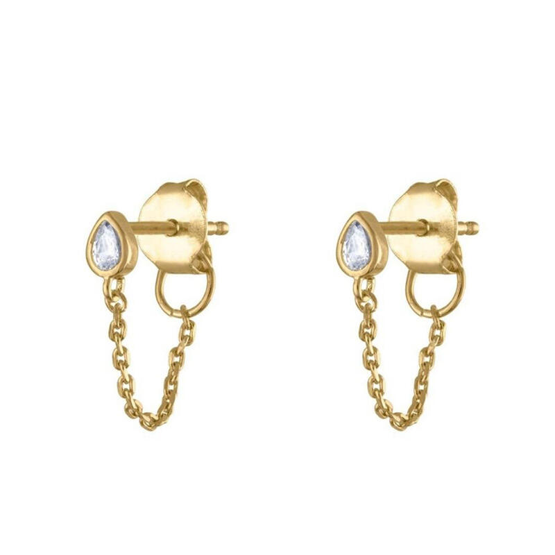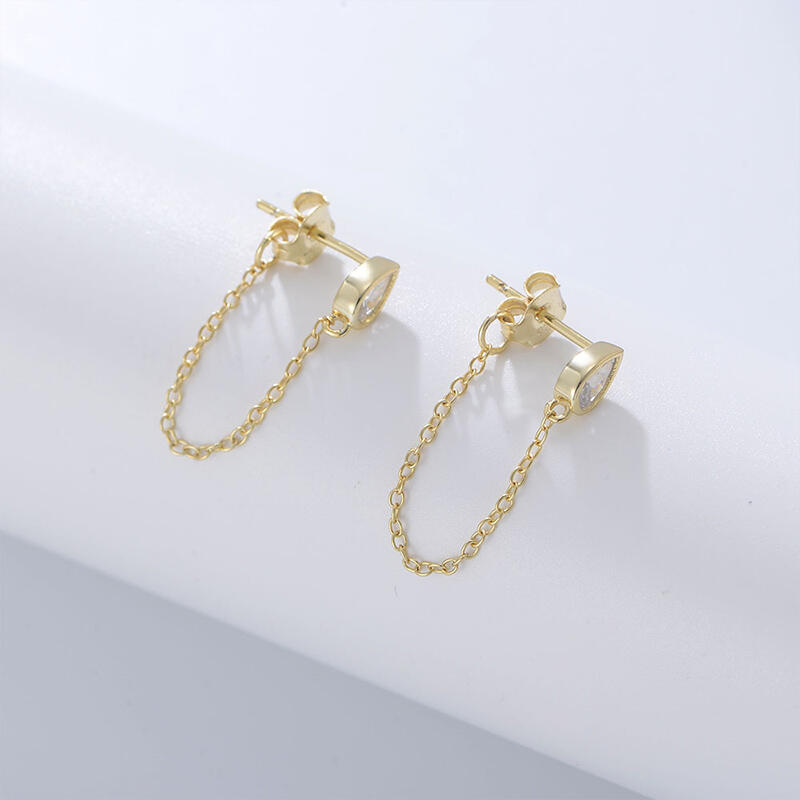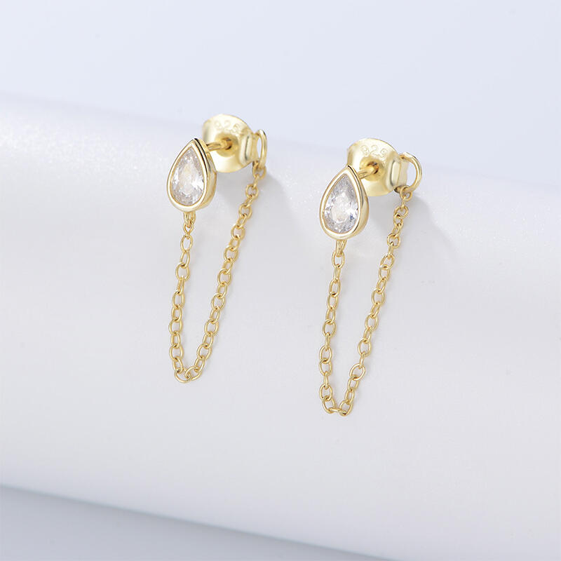 Dainty and delicate, this pair of earrings makes an adorable gift for loved or yourself. Crafted in sterling silver, each earring is designed with a pear-cut stone as stud and a chain as drop. These classic, lightweight drops with pretty stones are guaranteed to wake up any outfit.