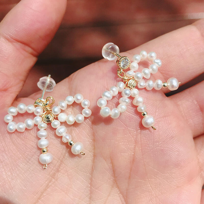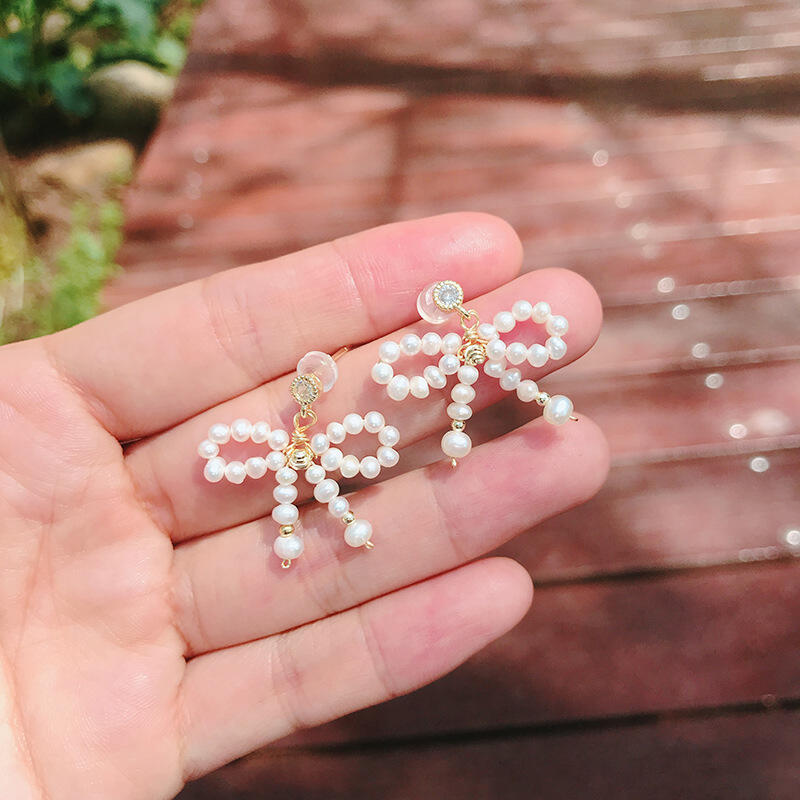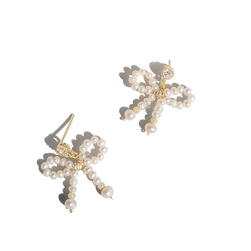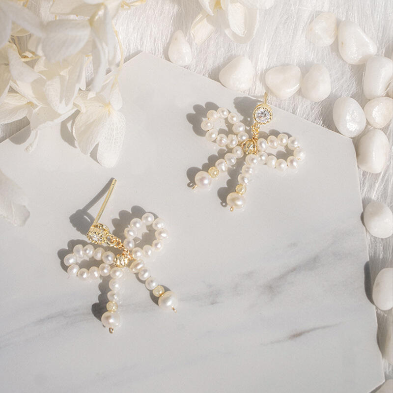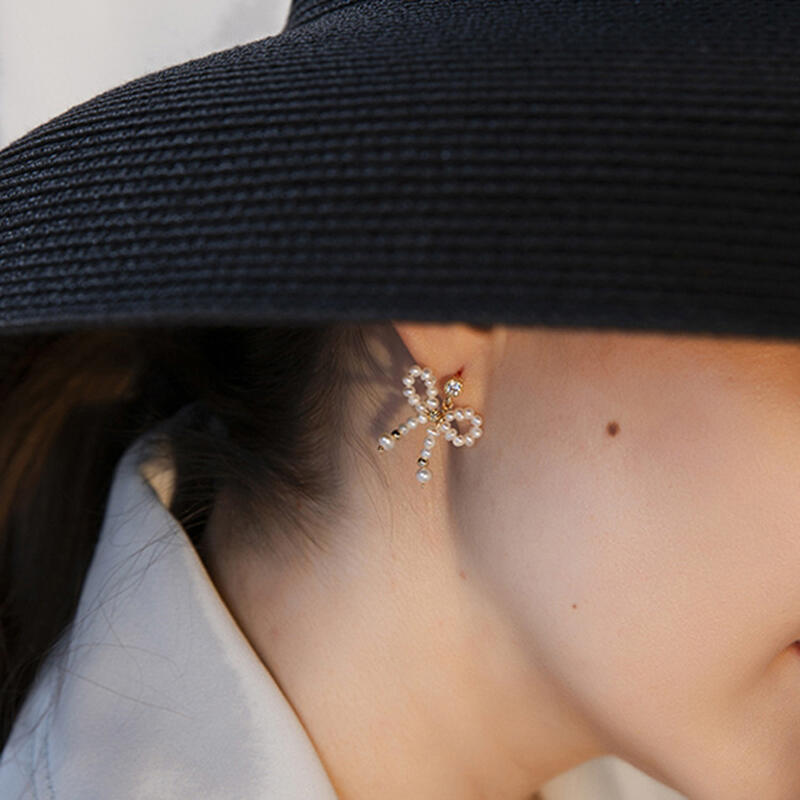 Jeulia Pearl Bowknot Design Sterling Silver Earrings