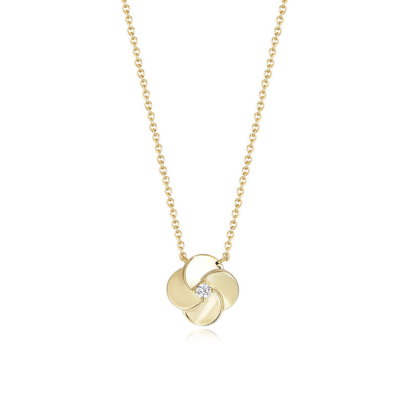 Complement her graceful look with this striking flower pendant. Created in warm gold-tone sterling silver, this design displays a flower of four petals with a white stone glittering in the center. Buffed to a brilliant shine, the necklace will easily captivate her heart.