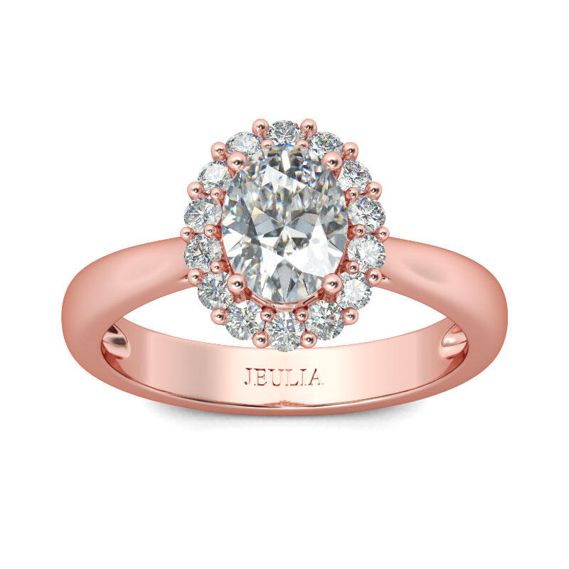 Jeulia Rose Gold Halo Oval Cut Sterling Silver Ring
