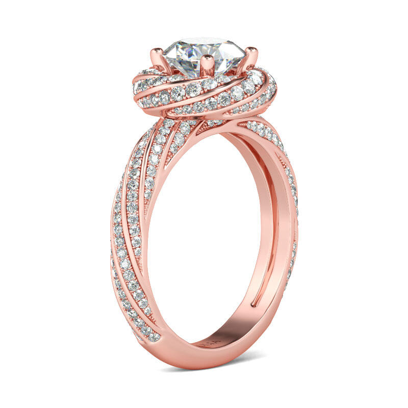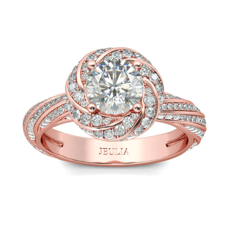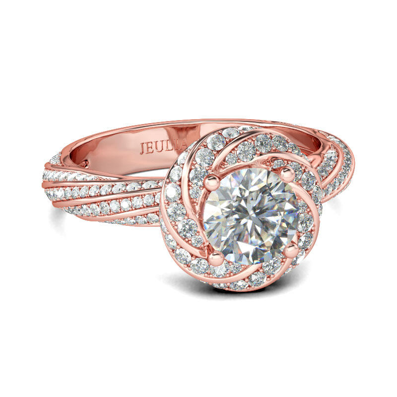 Jeulia Rose Gold Tone Twist Round Cut Sterling Silver Ring