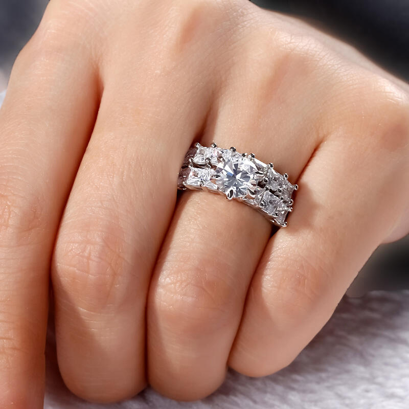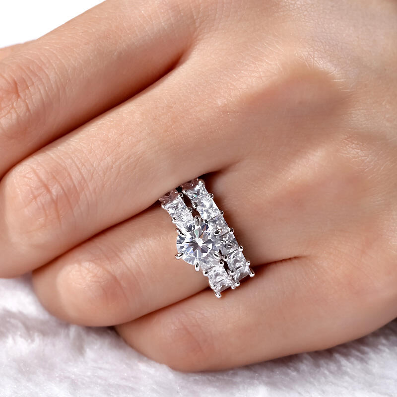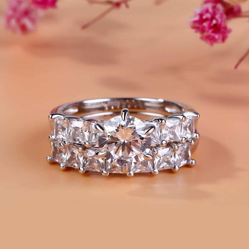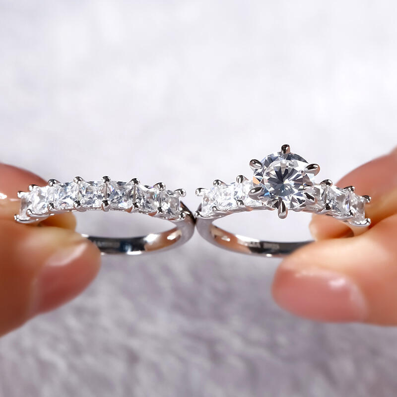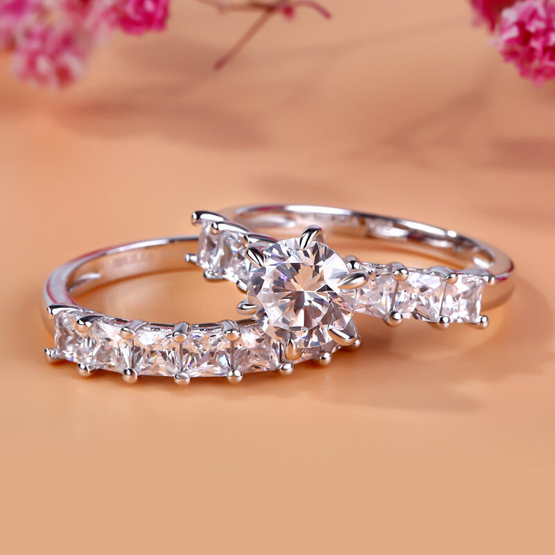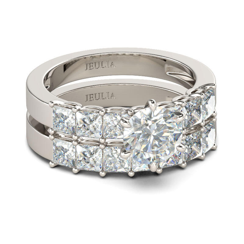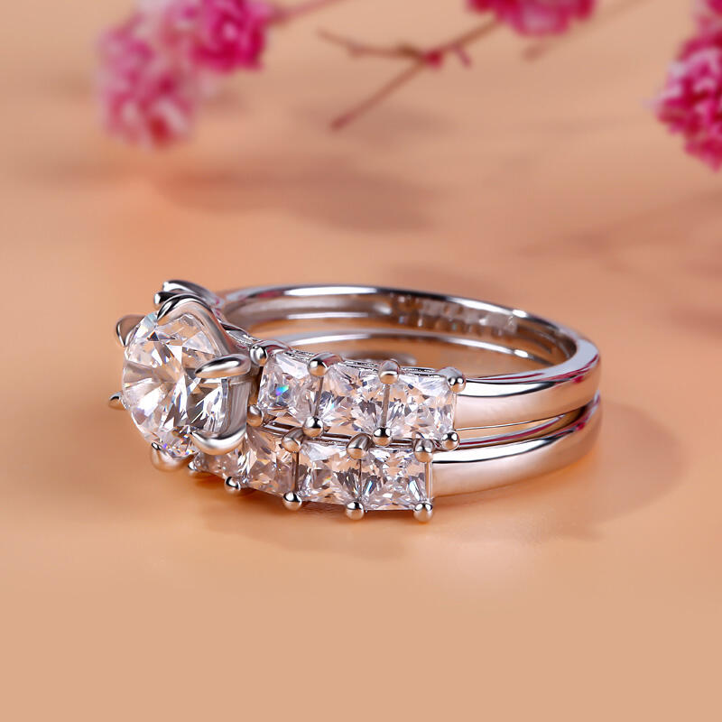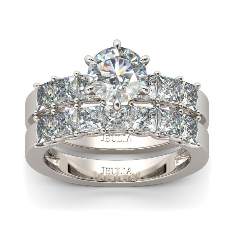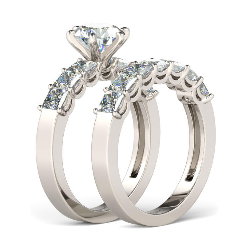 Express your love and commitment with this stunning ring set. On your wedding day, the coordinating wedding band fits closely with the engagement ring, completing the ensemble. This exceptional bridal set will forever express your eternal love and undying commitment.