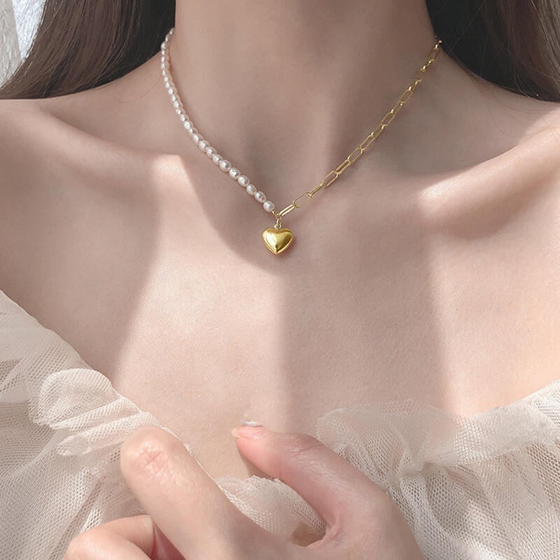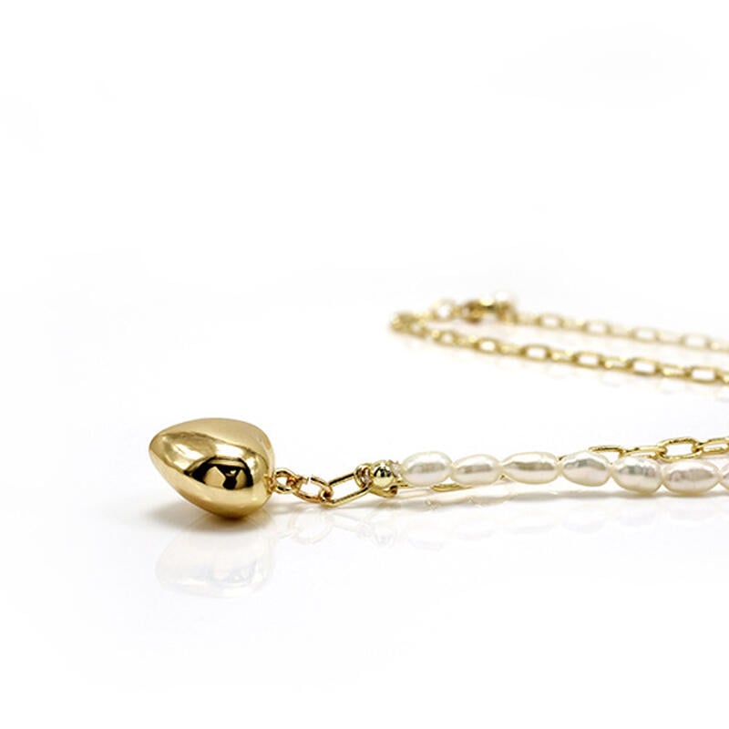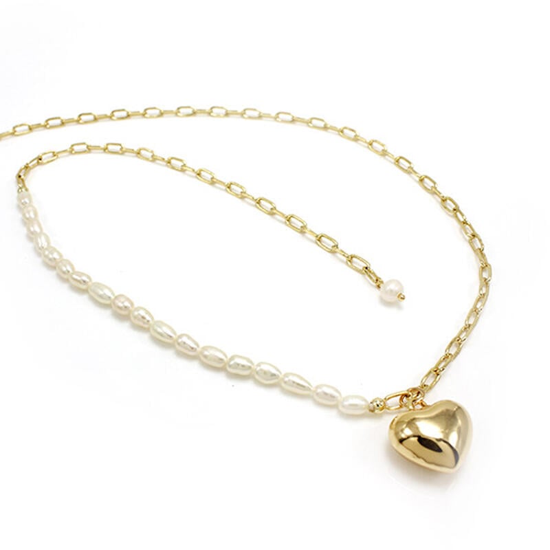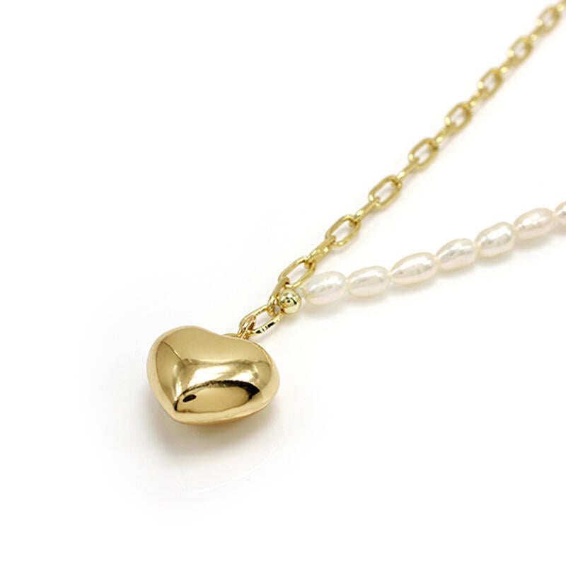 A striking heart pendant is traced by warm cultured pearls and gold tone sterling silver in this loving design. Simple yet dateless style, delicate texture and bright shine make this heart necklace extremely enchanting, an essential of your wardrobe.