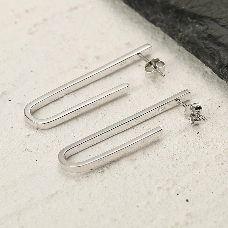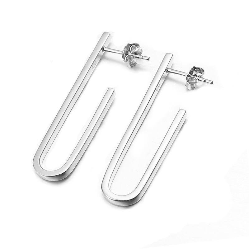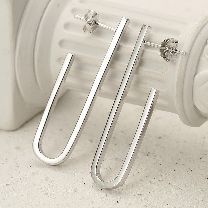 Jeulia Simple U-shaped Paperclip Sterling Silver Earrings