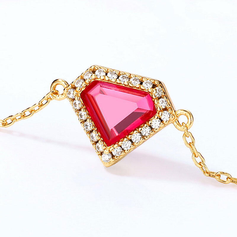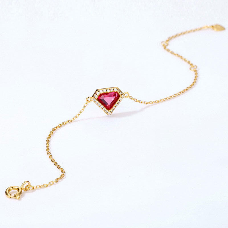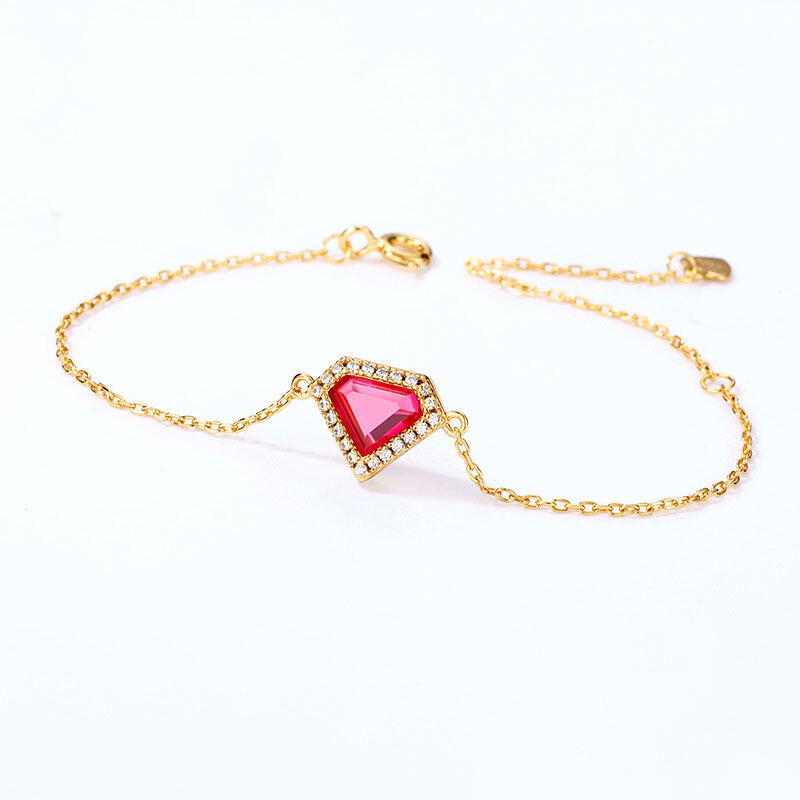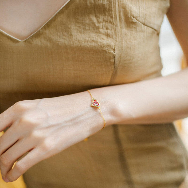 This bracelet impresses with refined elegance. It is set with a large, red stone surrounded by sparkling white pavé, creating a simple yet beautiful look. This bracelet is also a thoughtful gift for special moments.