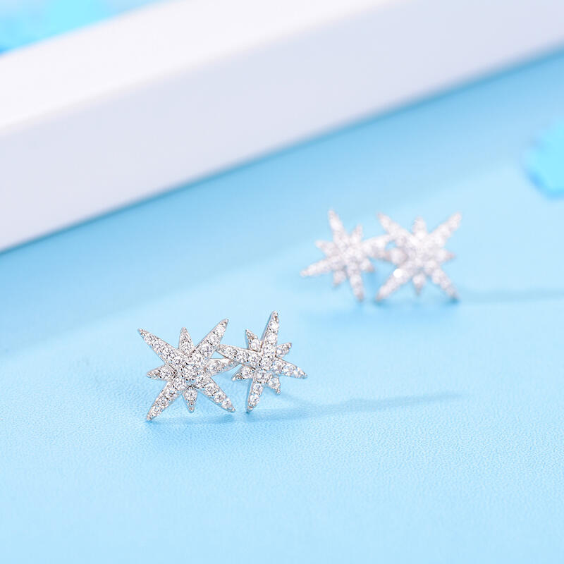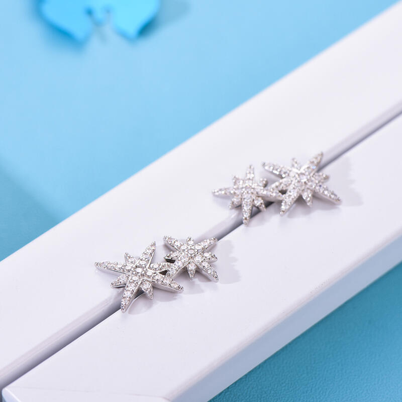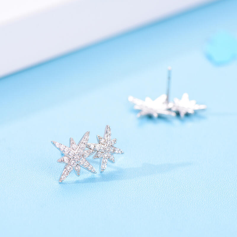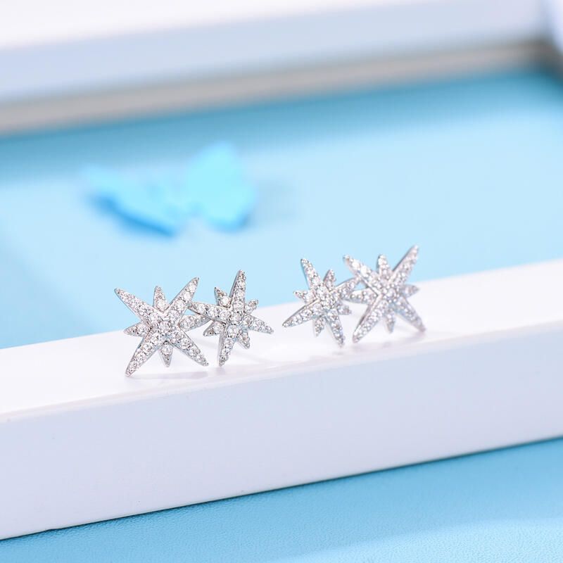 Show off your star status with these sterling silver star stud earrings. The star design ticks so all the right boxes when it comes to this season's trends. Add some starry shine to your wardrobe with these star design earrings, featuring two star motifs coated in sparkling stones.