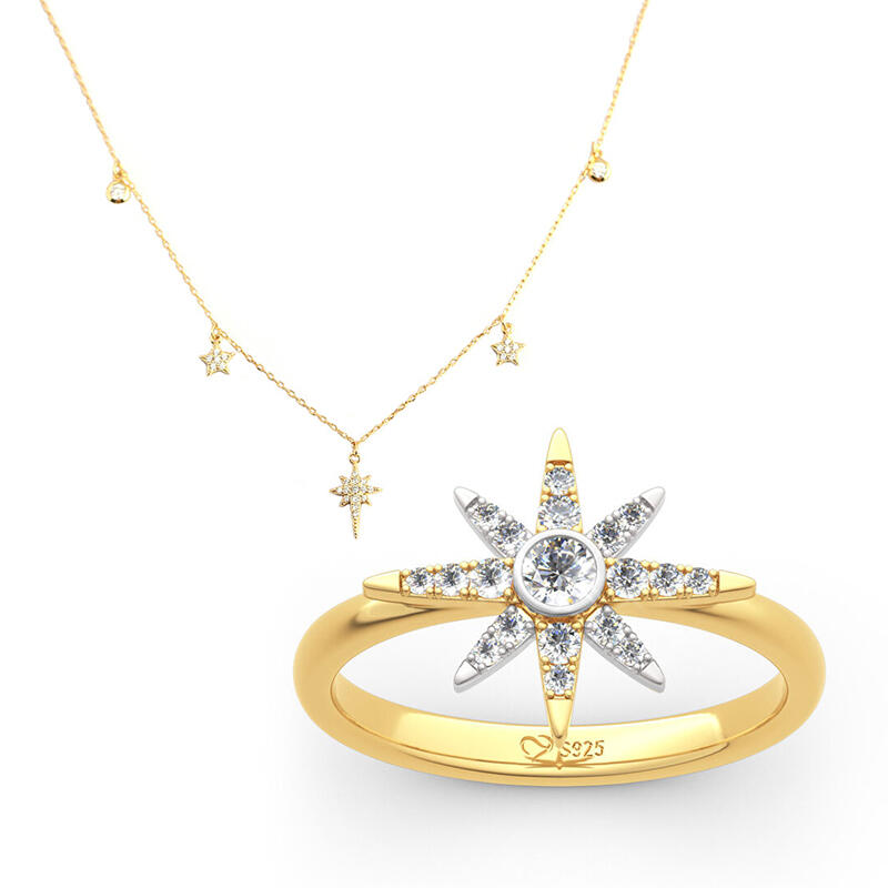 Showing simple but timeless beauty, this jewelry set makes an adorable gift for yourself or loved one. The star is fairy in the night sky, which is one of the most popular design elements in jewelry. May you have a bright and dazzling future as stars.