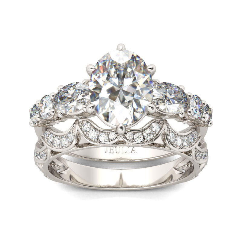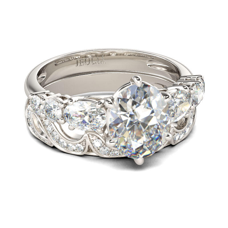 Jeulia Swirl Oval Cut Sterling Silver Ring Set