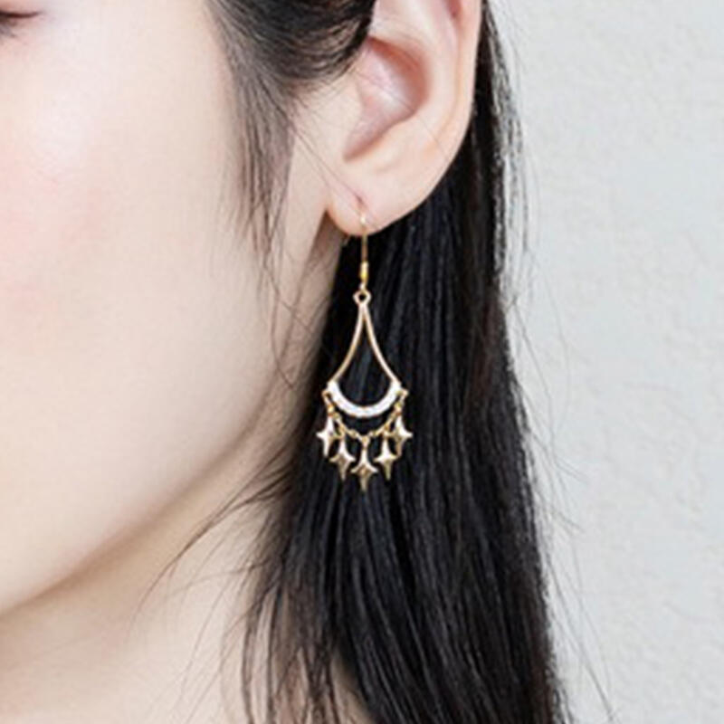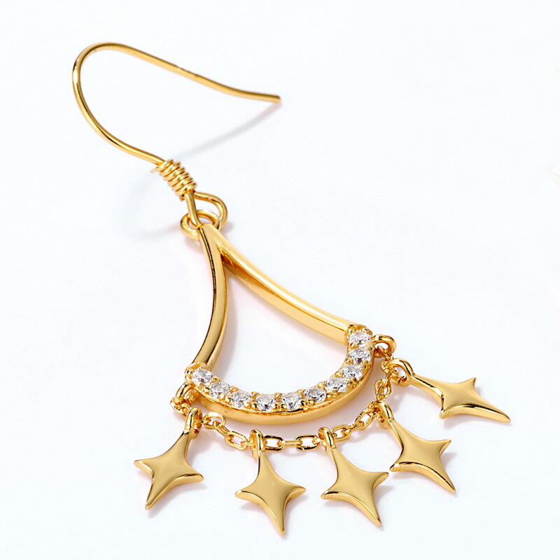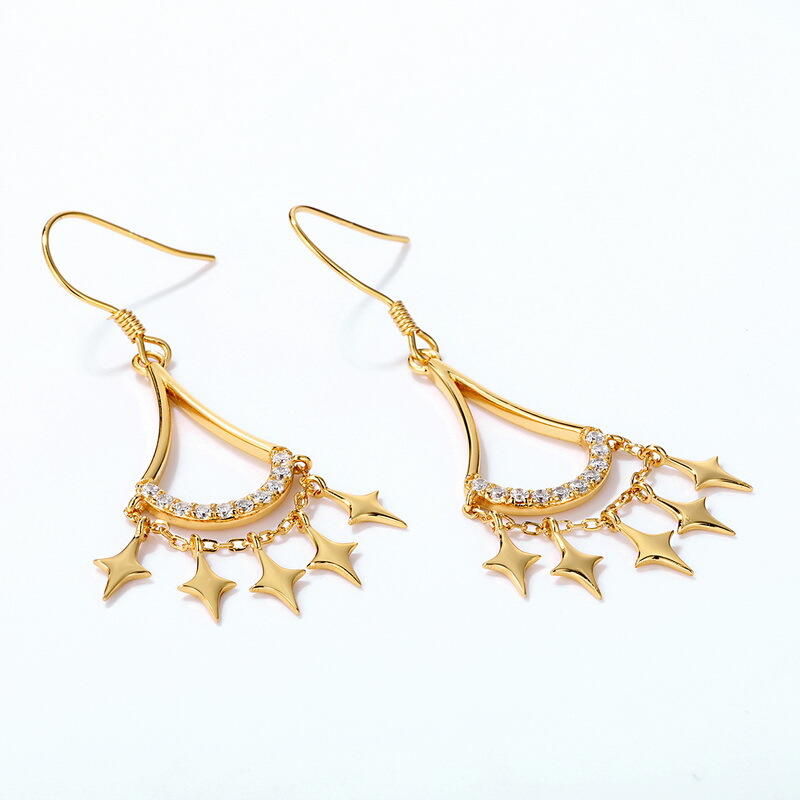 Elegant and sparkling, you'll love these unique and stylish drop earrings. Each designed is full of detailing, finished with sparkling white stones and tassel stars to make it really shine on your ear.