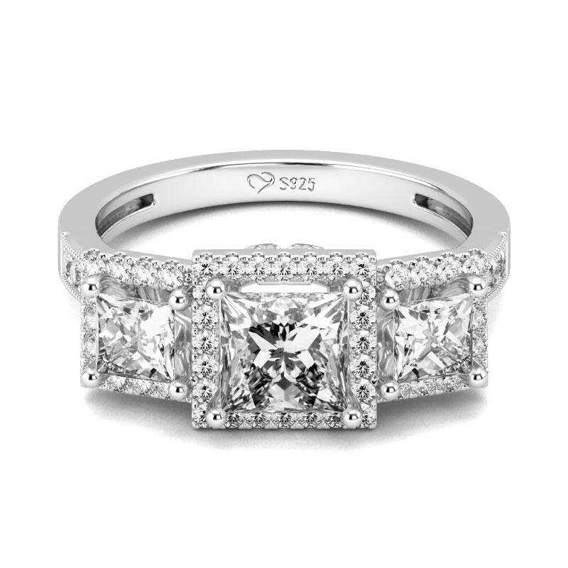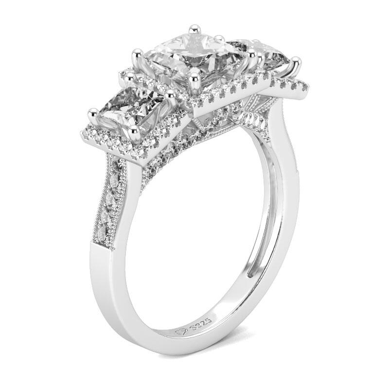 Jeulia Three Stone Princess Cut Sterling Silver Ring
