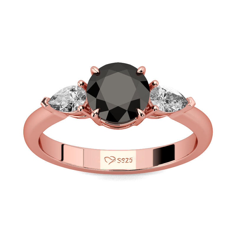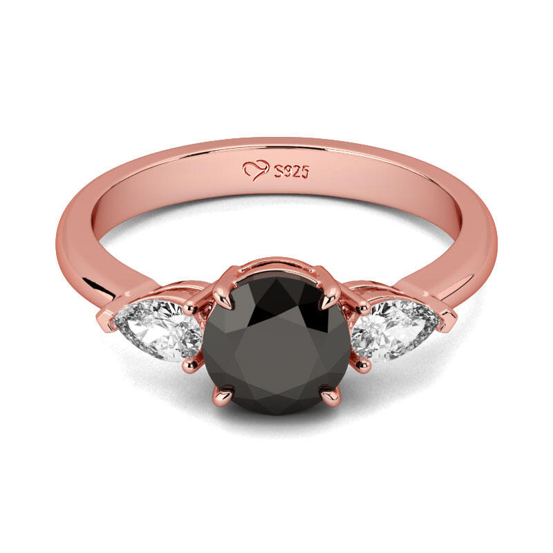 Jeulia Three Stone Round Cut Sterling Silver Ring