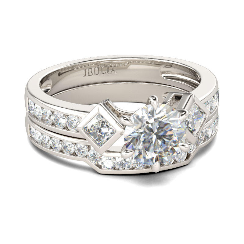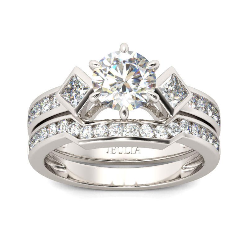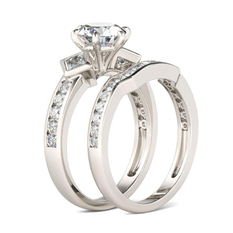A brilliant celebration of your love, this sparkling bridal set symbolizes your unforgettable moments. She'll know just how much she means to you with this glittering ring set on her finger.