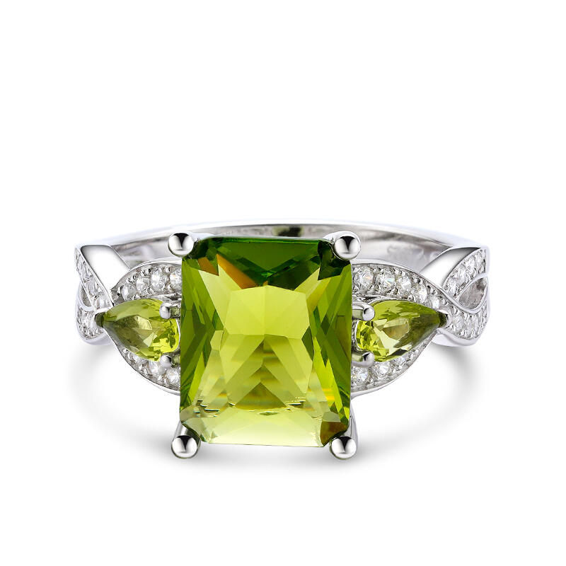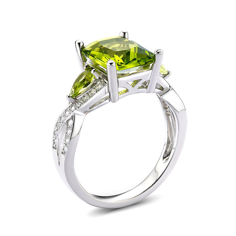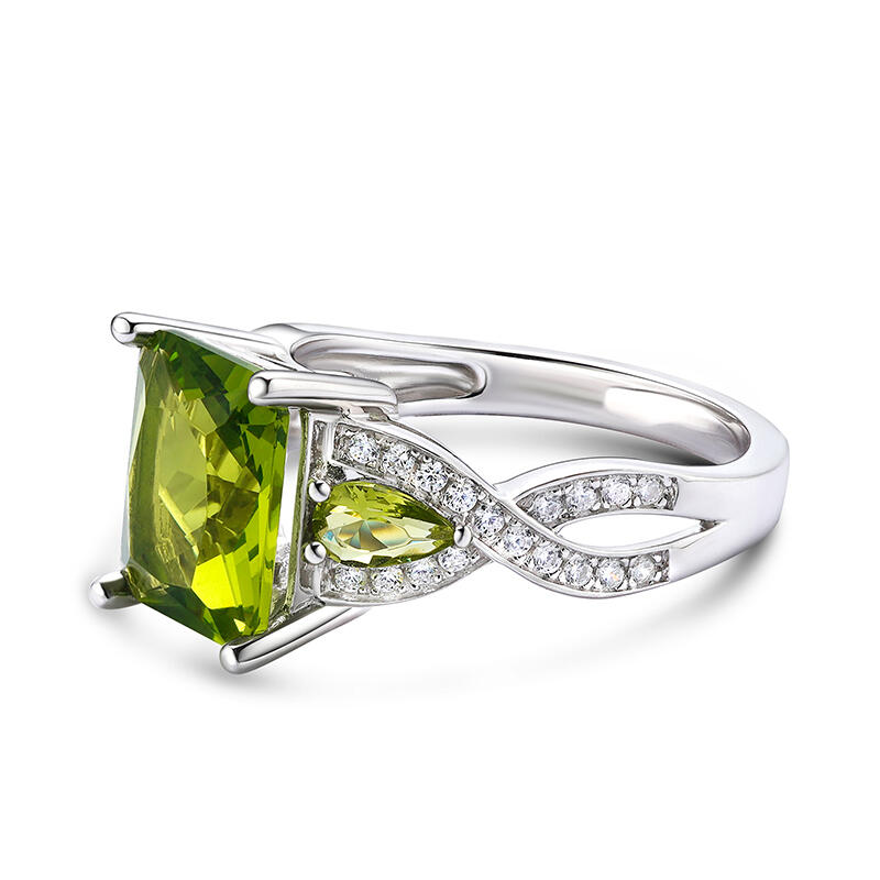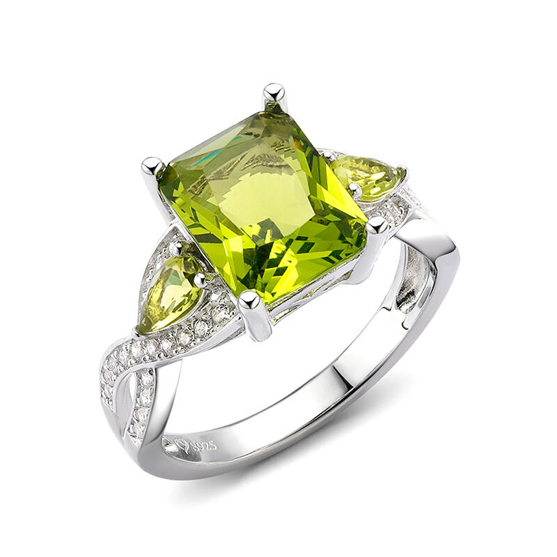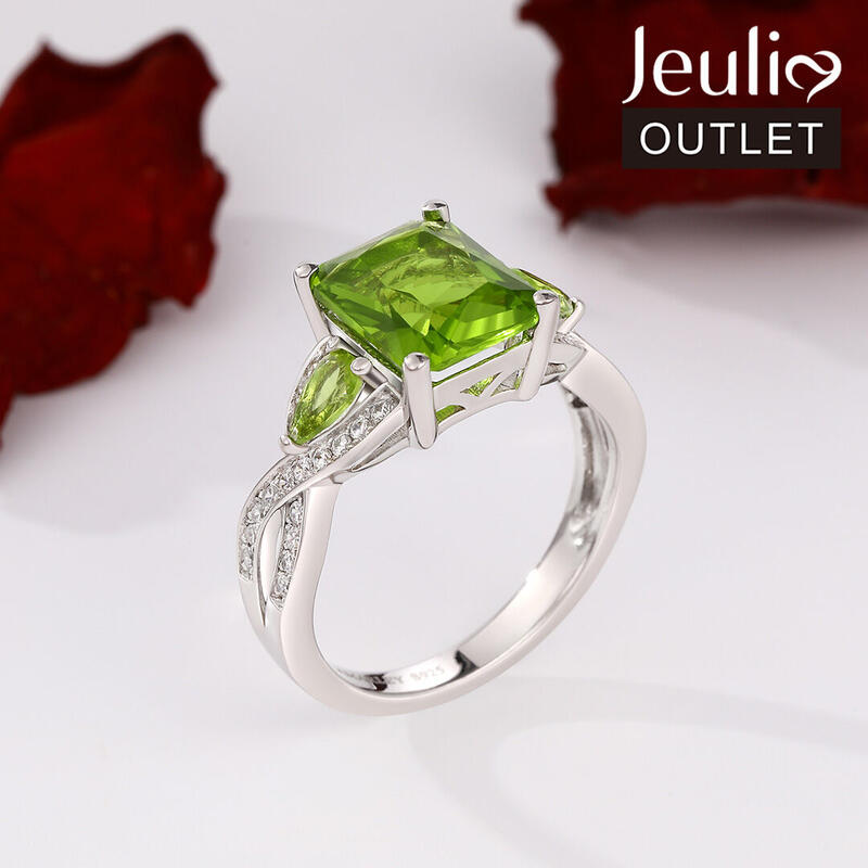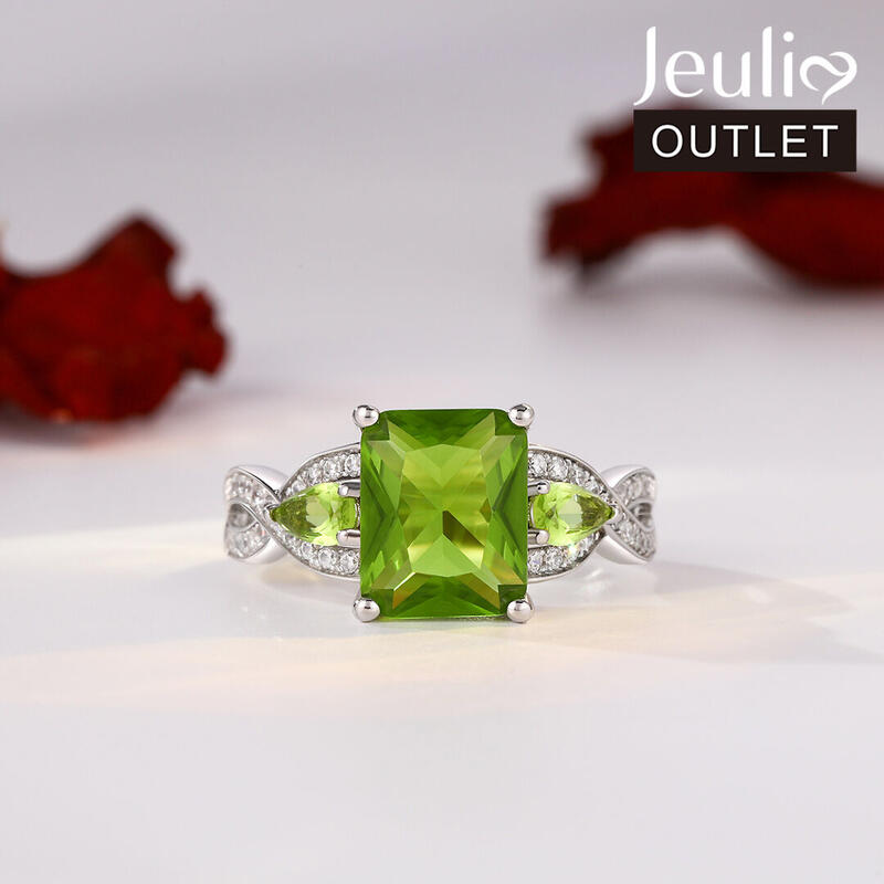 Jeulia Three Stone Twist Shank Radiant Cut Sterling Silver Ring