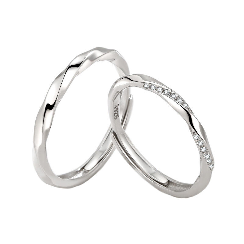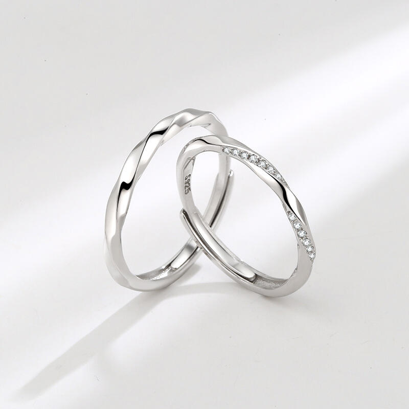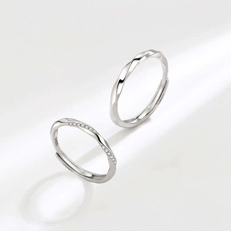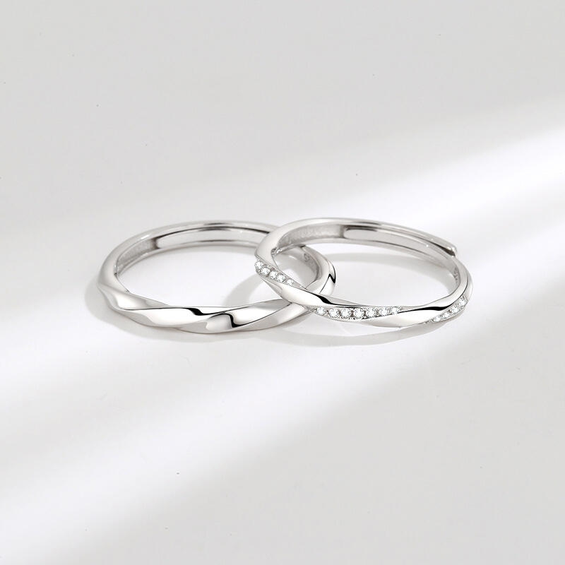 Jeulia Twist Design Sterling Silver Adjustable Couple Rings