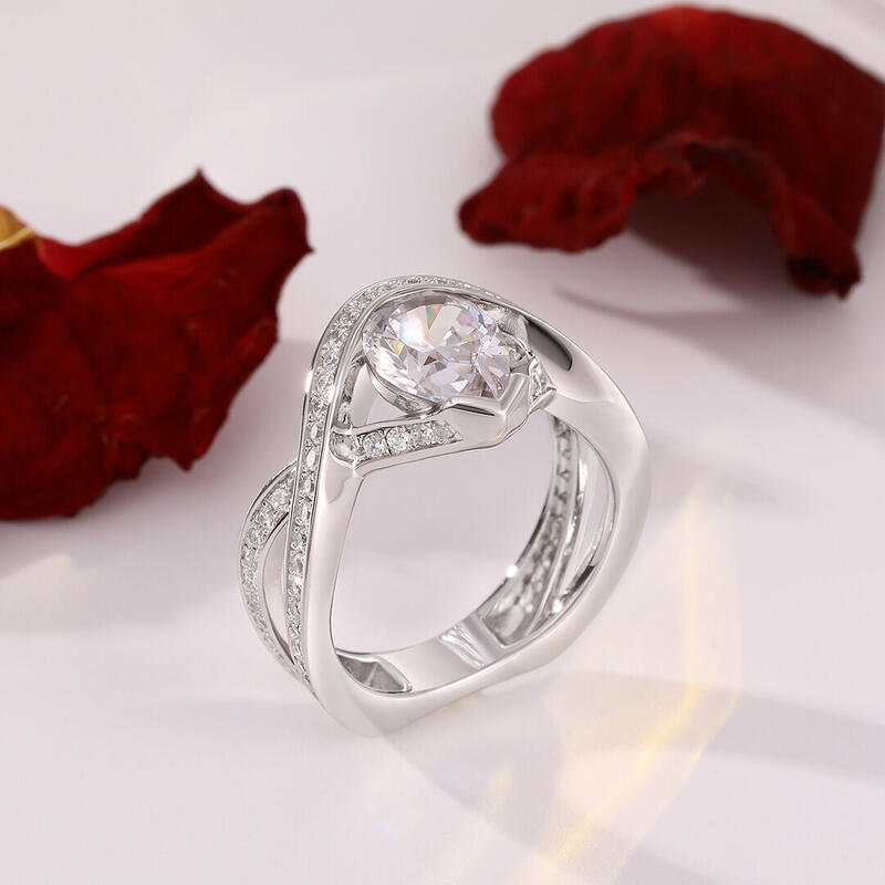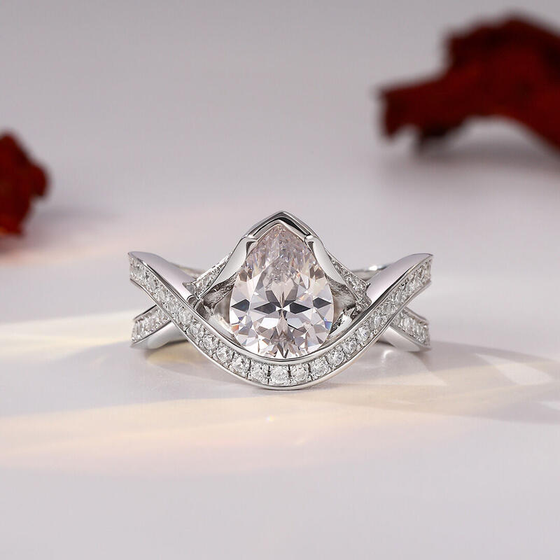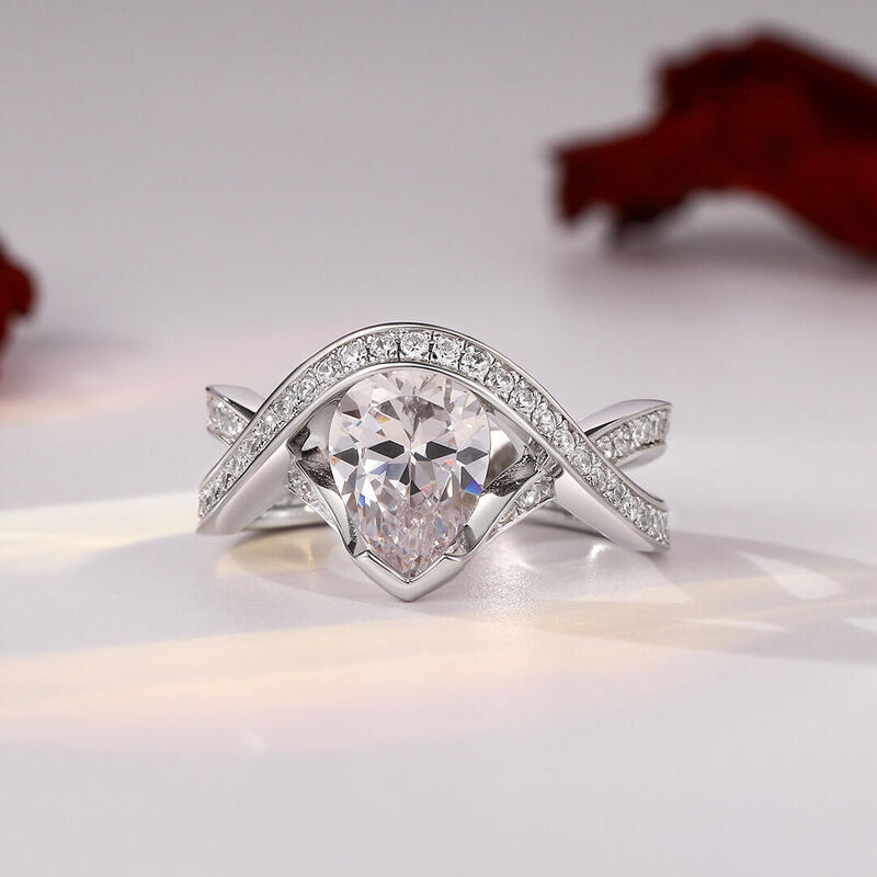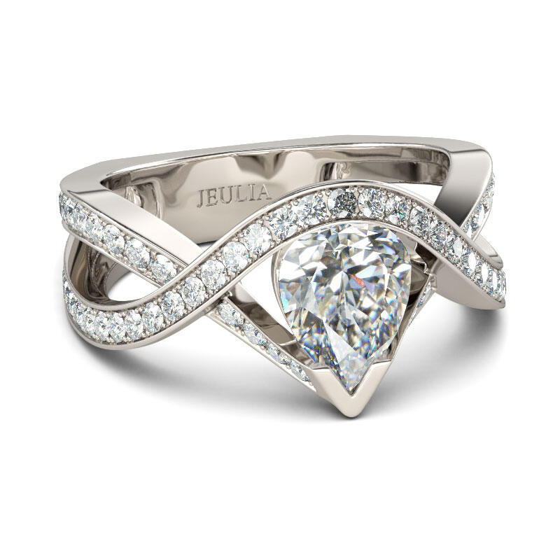 Jeulia Twist Pear Cut Sterling Silver Ring
