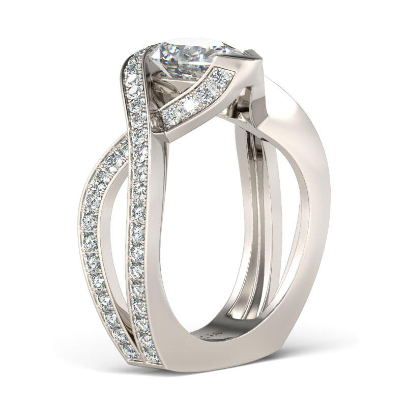 Elegant and modern, this crossover design showcases intertwining strands that represent two lives - and two distinct stories - as they blend together and become one.