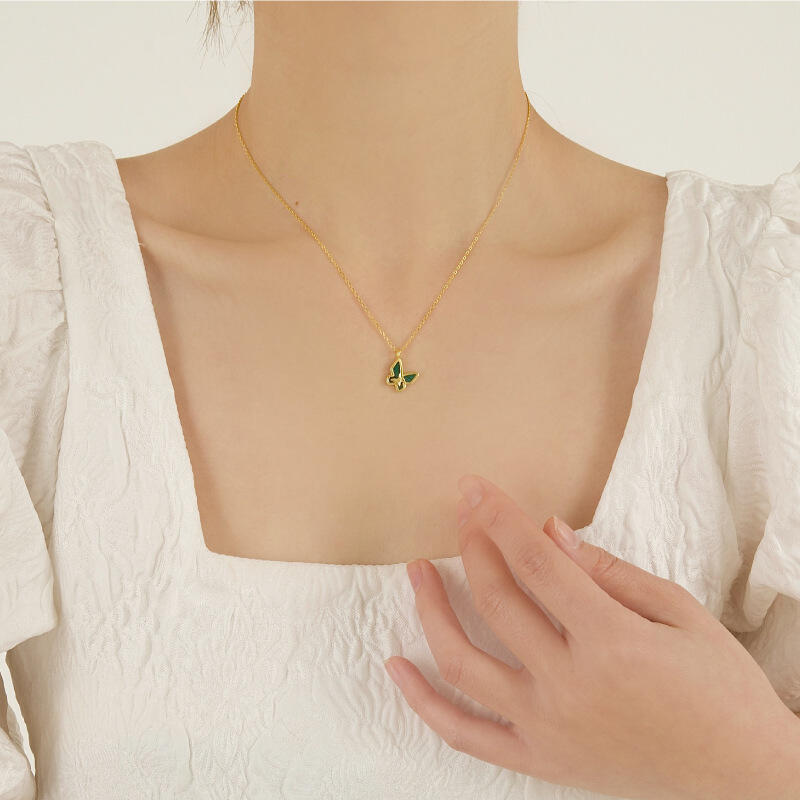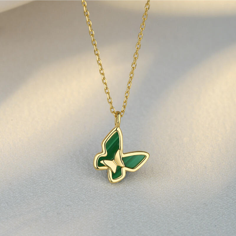 Showing elegant and timeless beauty, this necklace makes an adorable gift for yourself or loved one. It's made with lab-created malachite and set in 925 sterling silver.Butterflies represent hope, rebirth, and transformation. Pair this necklace with chokers or your favorite gold chain for a fun layered look.