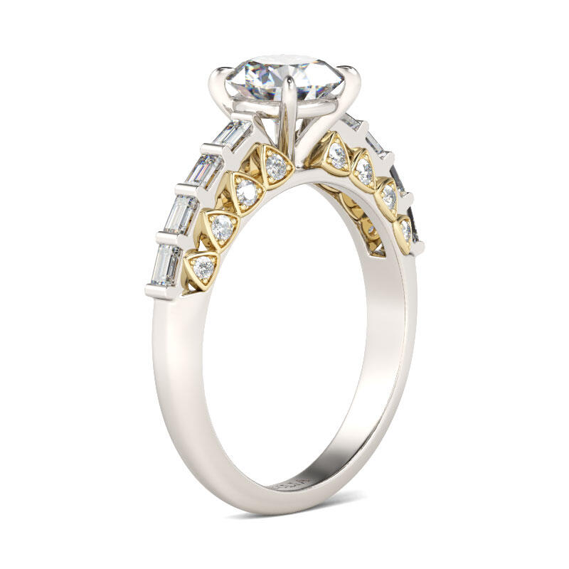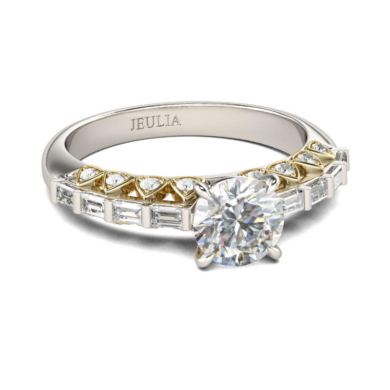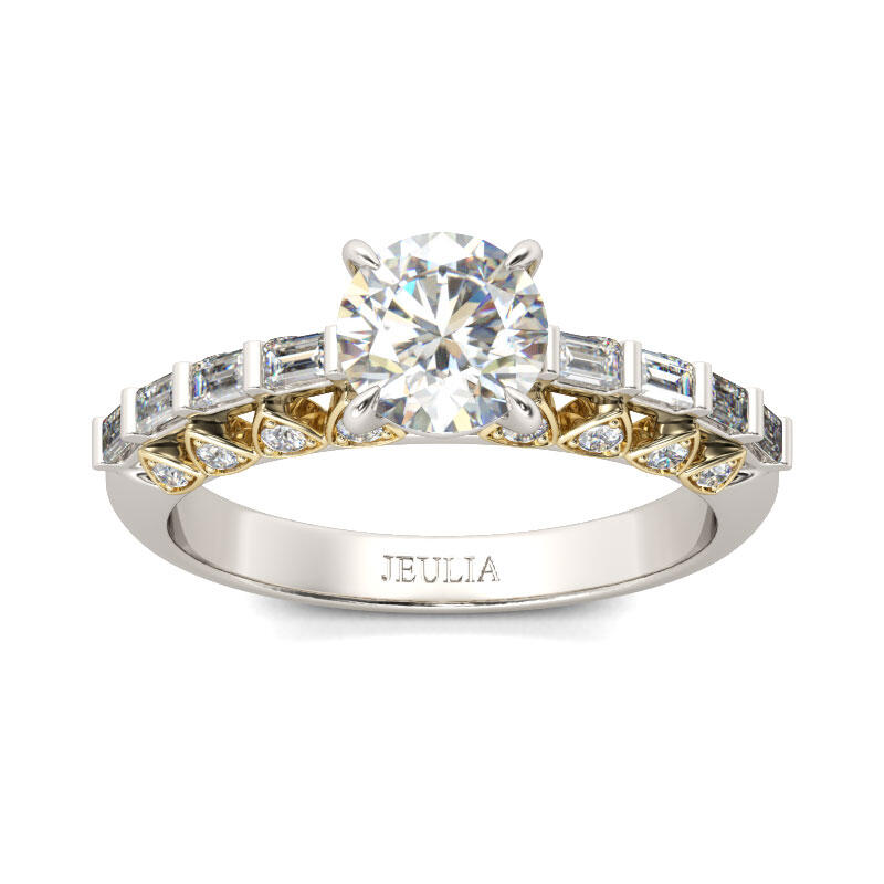 Jeulia Two Tone Bar Setting Round Cut Sterling Silver Ring