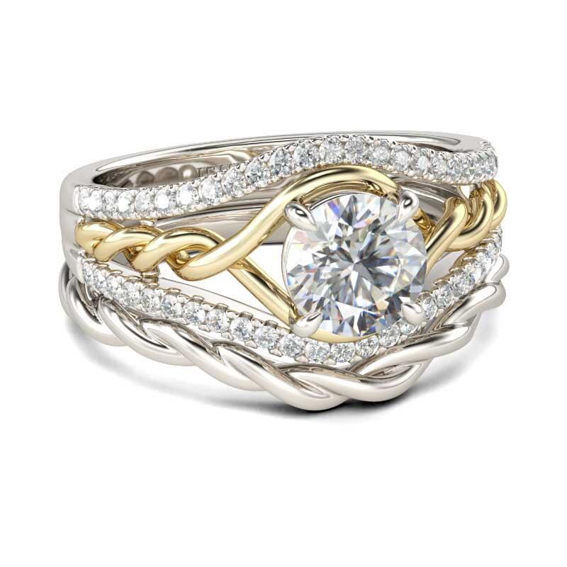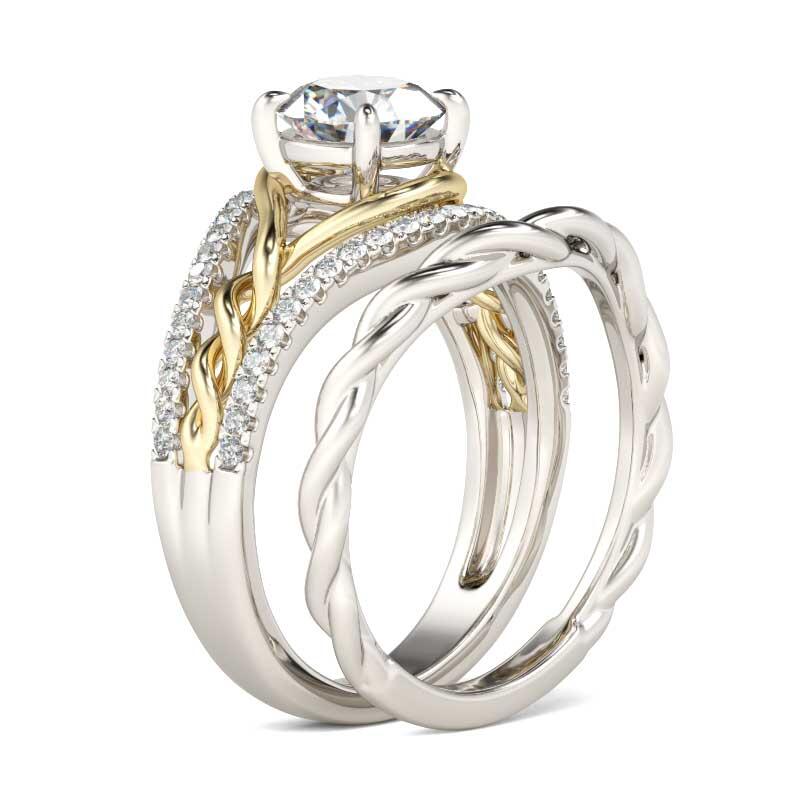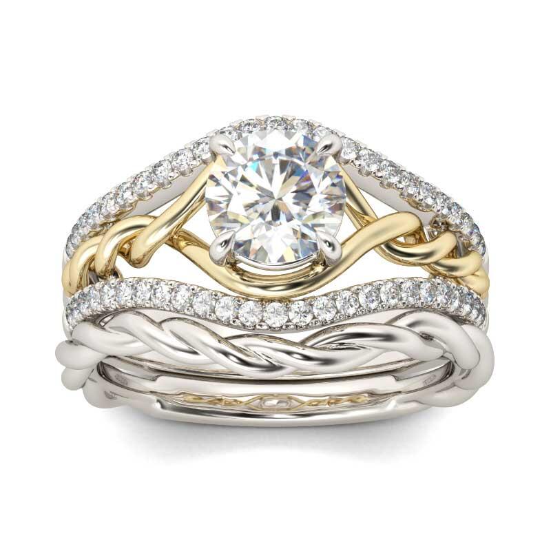 Express your love and commitment with this stunning ring set. On your wedding day, the coordinating wedding band fits closely with the engagement ring, completing the ensemble. This set is destined to delight.