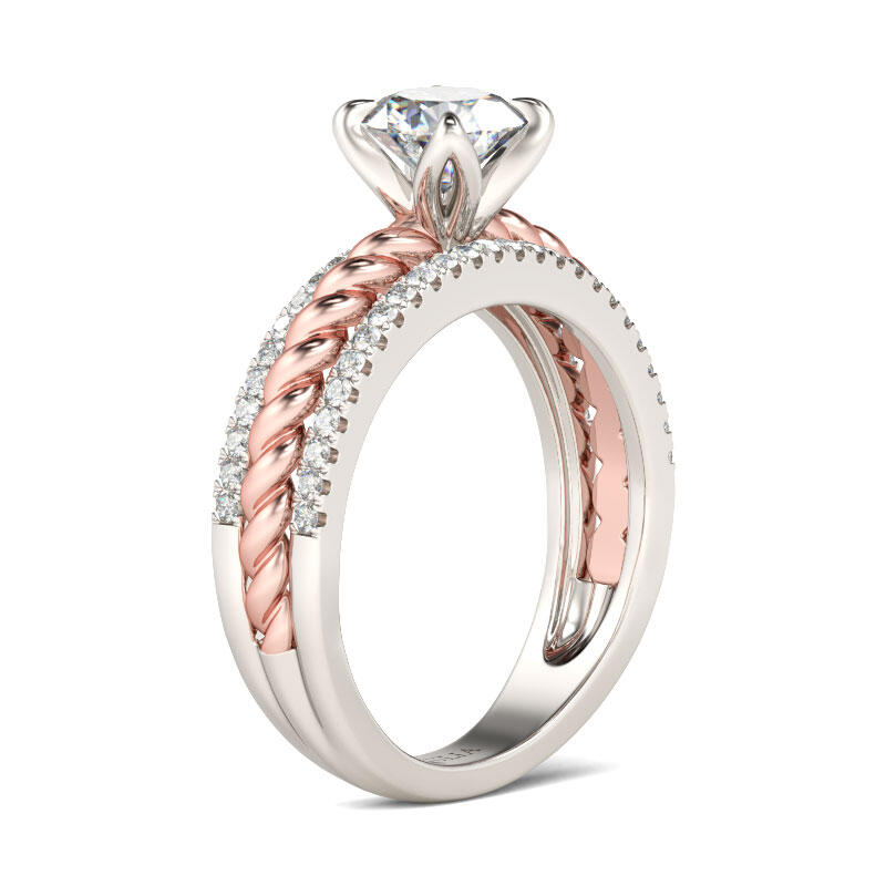Jeulia Two Tone Cable Round Cut Sterling Silver Ring