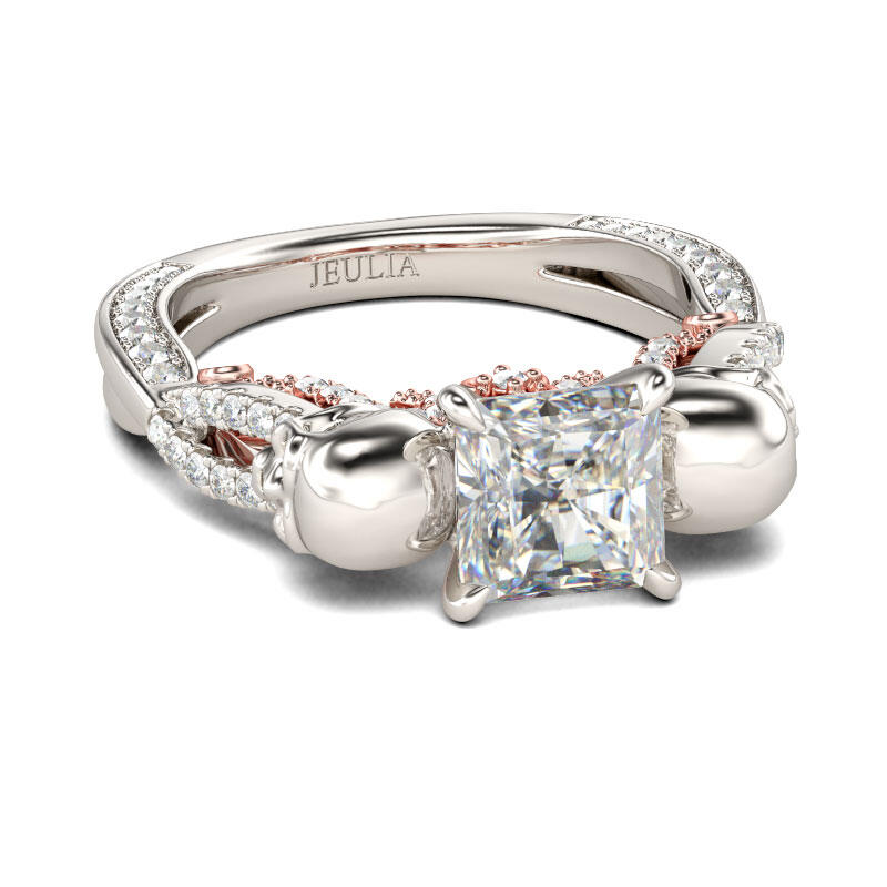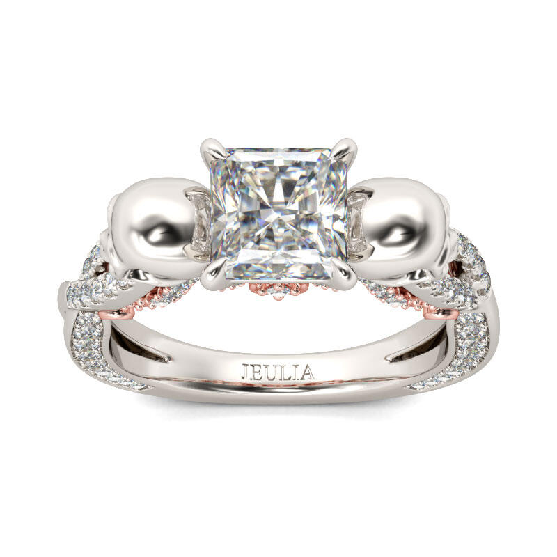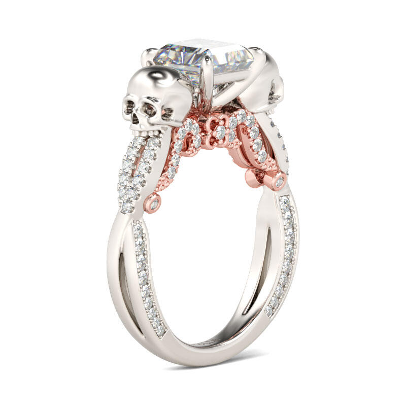 Jeulia Two Tone Crossover Princess Cut Sterling Silver Skull Ring