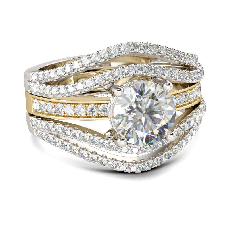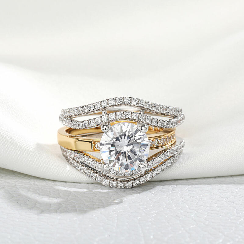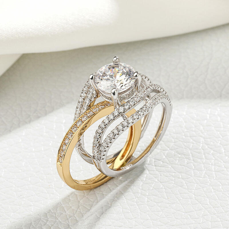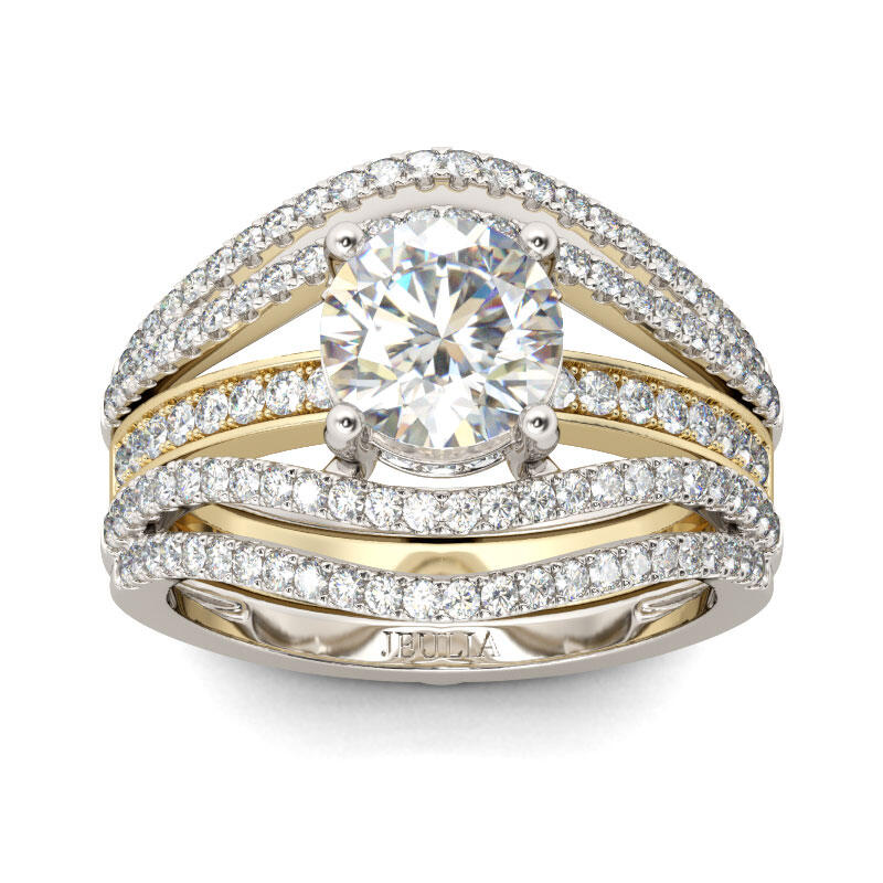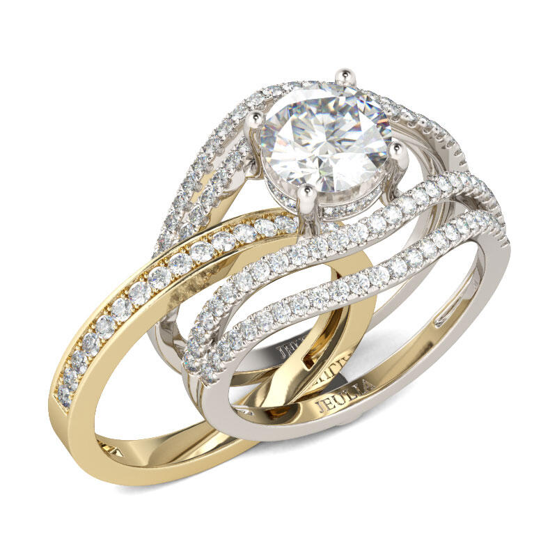 Jeulia Two Tone Round Cut Interchangeable Sterling Silver Ring Set