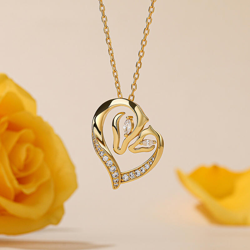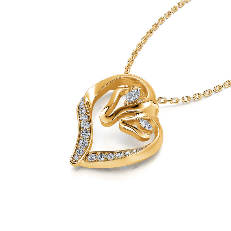 Don't forget to always hug your mom and dad tightly and tell them how you love them intensely. The mom and baby horse necklace is designed in yellow-gold tone silver, with marquise-cut and round-cut stones. The graceful silhouette of a mother horse and baby horse's heads grace the side of a heart. The perfect gift for mother and daughter horse lovers.