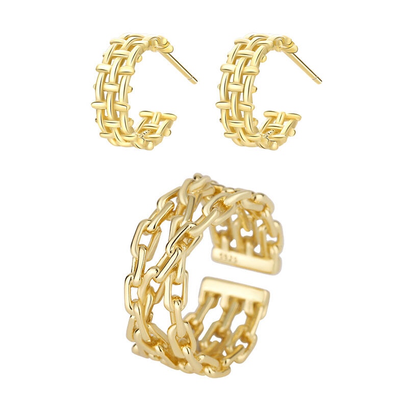 Simply chic, this gold tone jewelry set is a clever accessory you'll love to wear. These beauties are simply unforgettable and they feature an elaborate weave or chain design that was inspired by queens like you.
