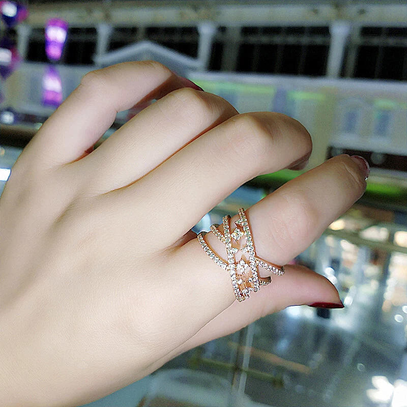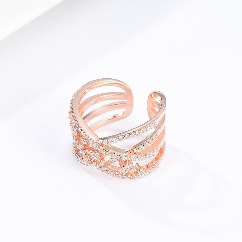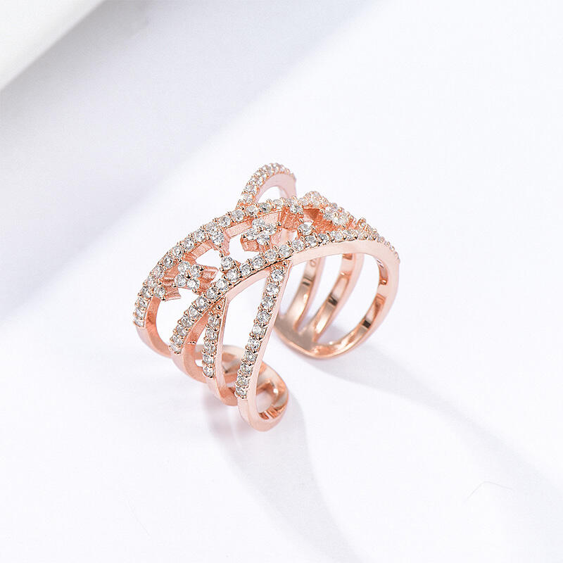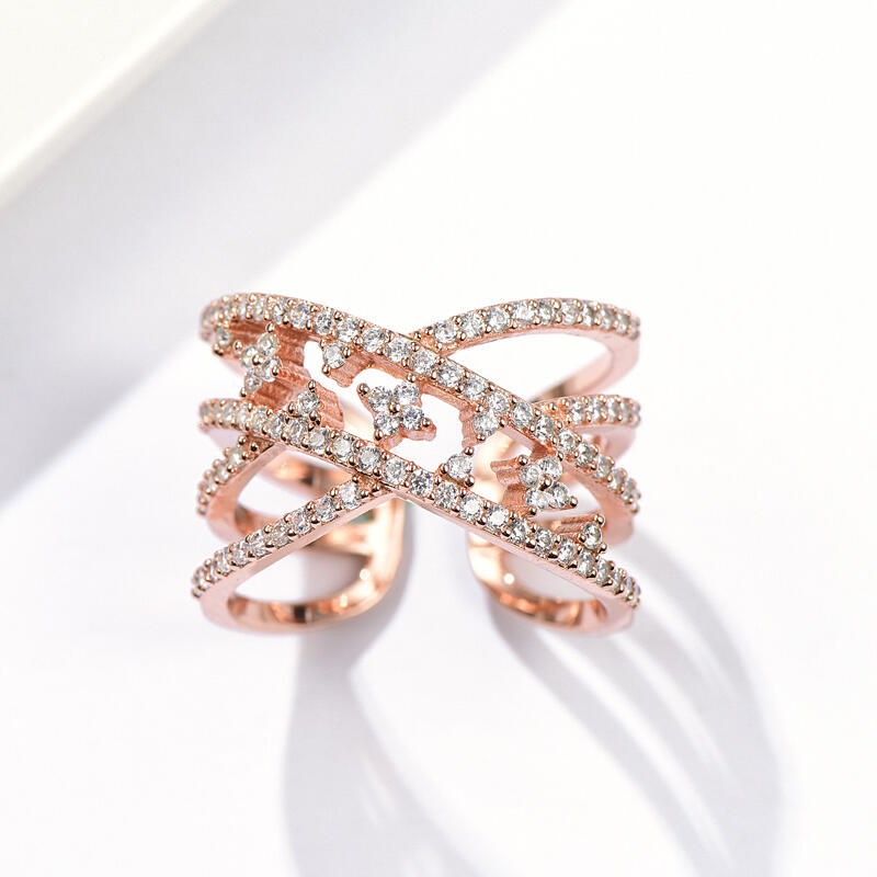 Simple but not plain, this ring will be a nice choice for fans of understated beauty. Made in sterling silver with brilliant white stones, stylish intertwined split shank makes it stand out from other rings. Fully adjustable, fits any size you can make ring smaller or bigger.