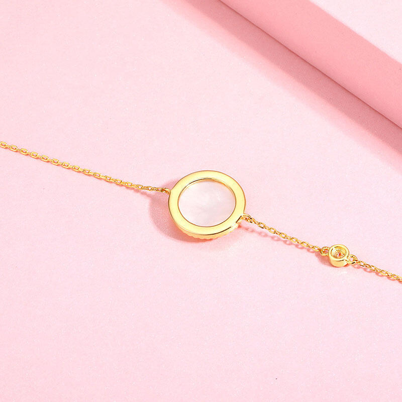 Radiate light and sparkle with this shimmering star bracelet. Crafted in sterling silver, this stunning yellow-gold tone plated bracelet features a natural shell disc with a central star that appears to float inside. Mix and match with other jewellery pieces to enjoy timeless elegance from day to night.