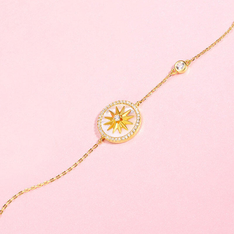 Jeulia Yellow Gold Tone Eight-Point Star Sterling Silver Bracelet