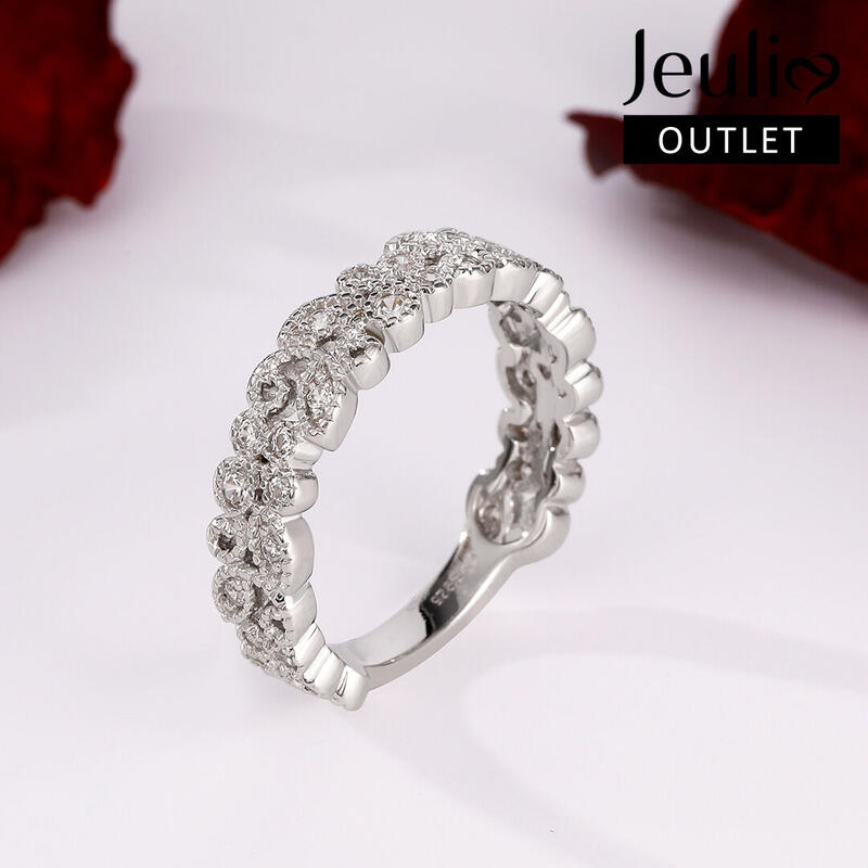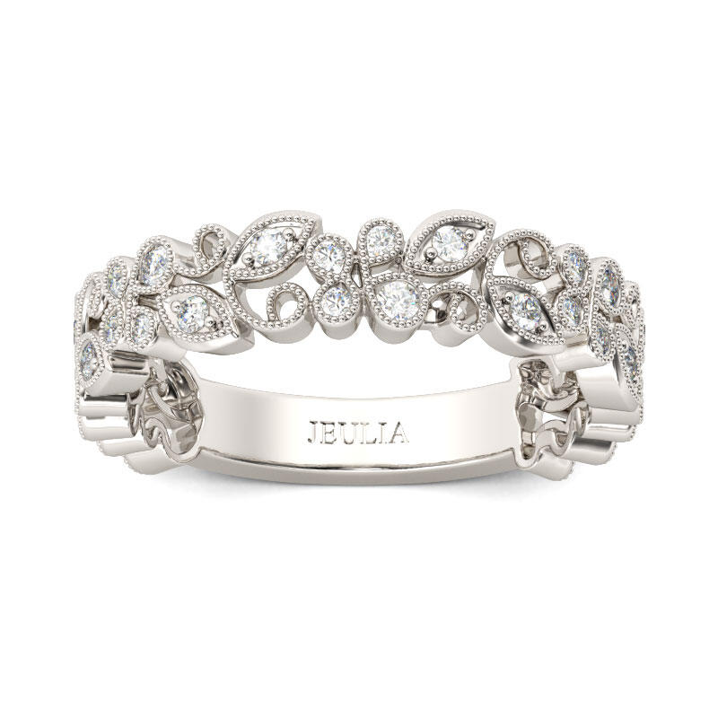 Jeulia Leaf Milgrain Round Cut Sterling Silver Women's Band