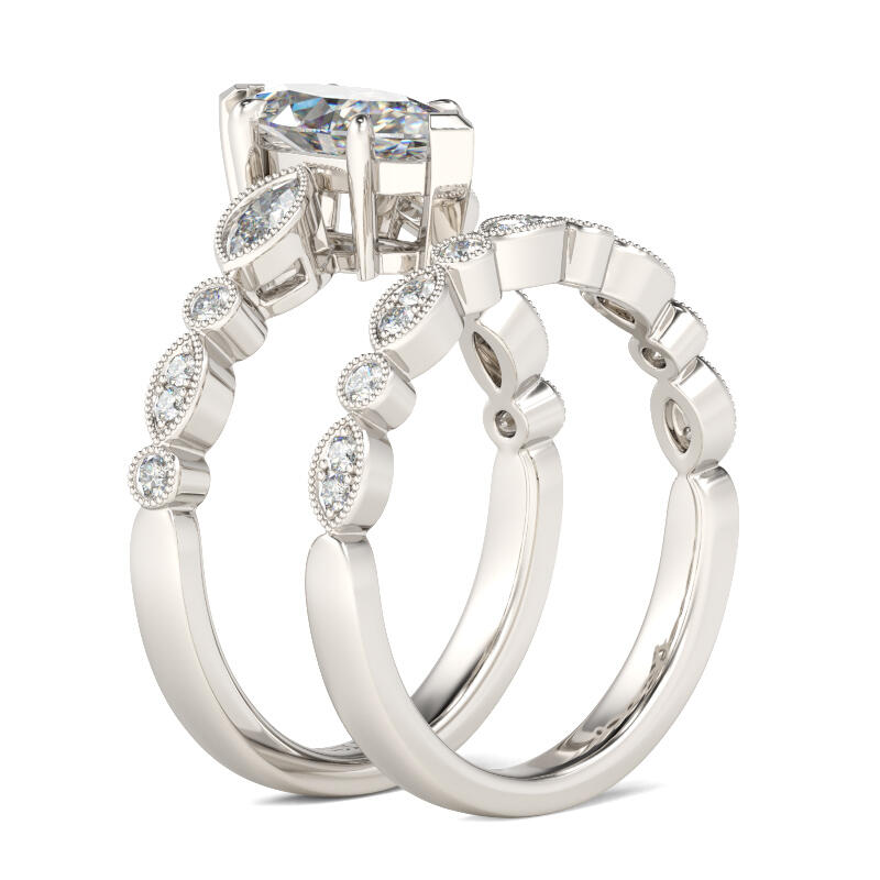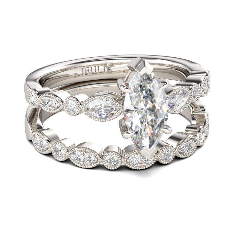 Jeulia Marquise Cut Vintage Sterling Silver Ring Set