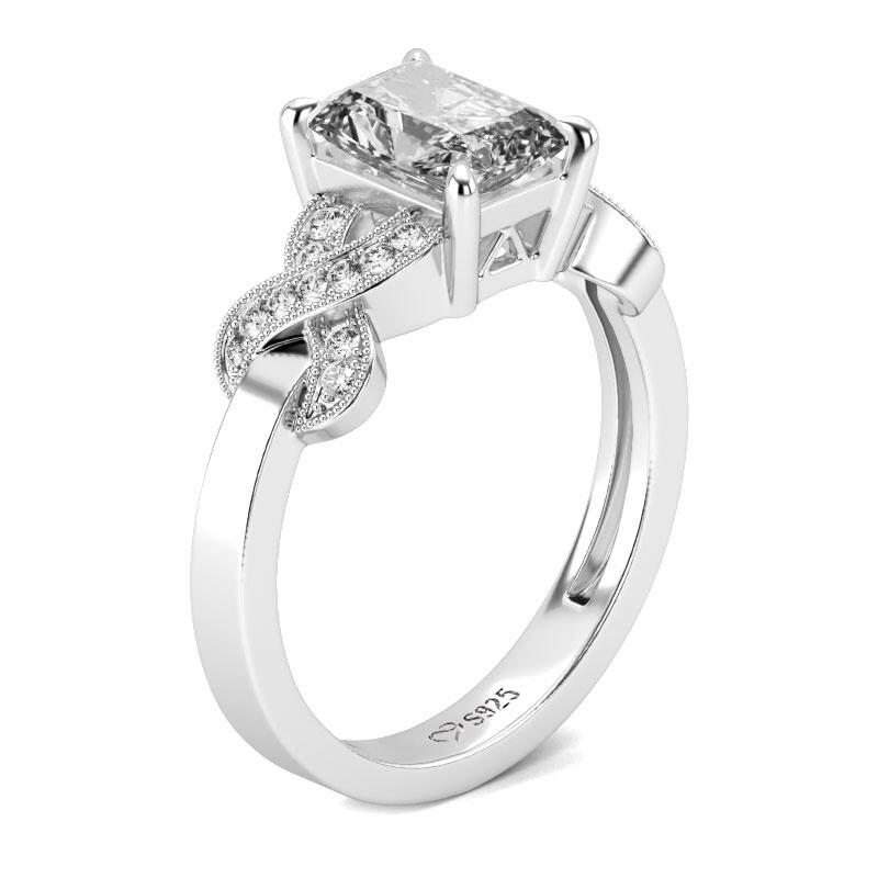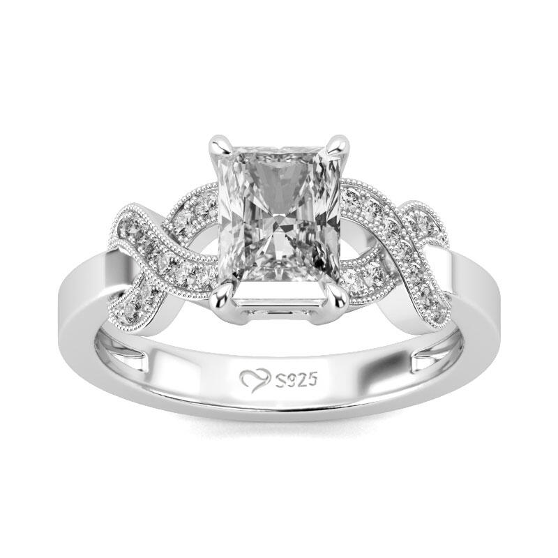Chic and sophisticated, this engagement ring is an heirloom look she'll adore. Crafted in sterling silver, it features a radiant cut stone in the center, while twist designs shimmer on both sides of the center stone and decorate the polished split shank. Buffed to a brilliant luster and certain to delight, this comfort-fit ring makes a great gift on any occasion.