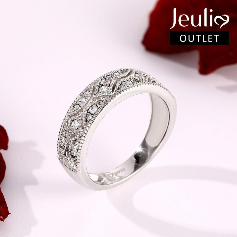 Jeulia Milgrain Round Cut Sterling Silver Women's Band