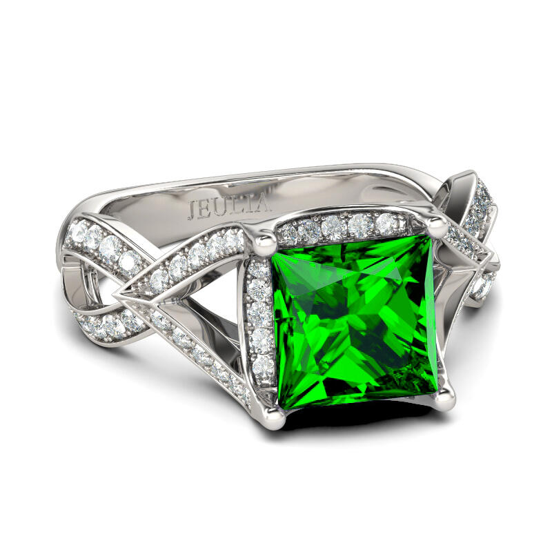 Jeulia Princess Cut Twist Sterling Silver Ring