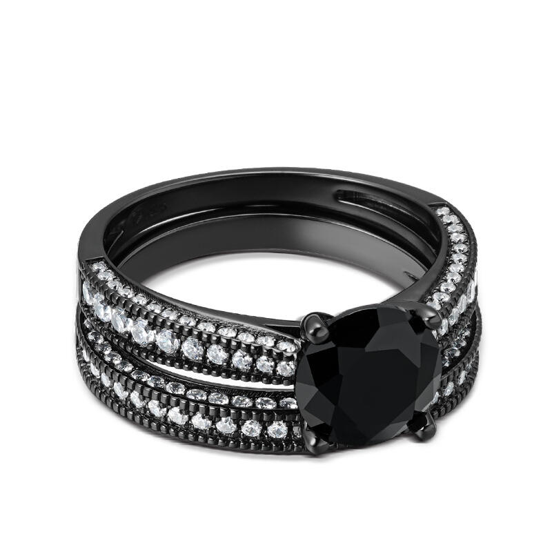 Jeulia Round Cut Sterling Silver Ring Set