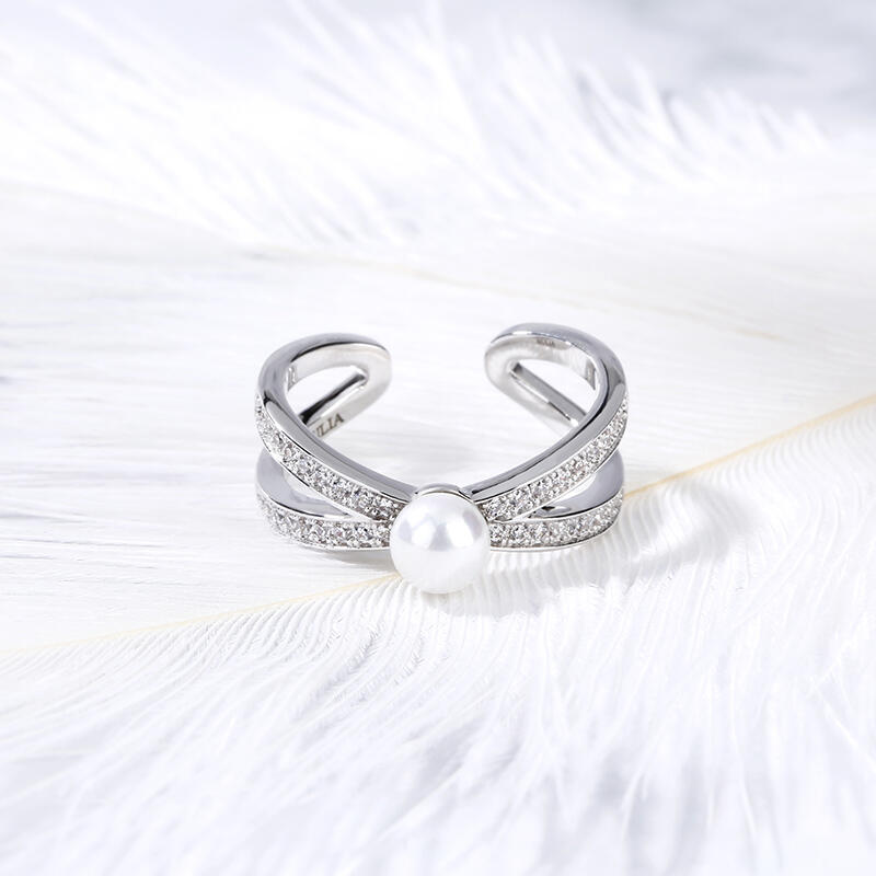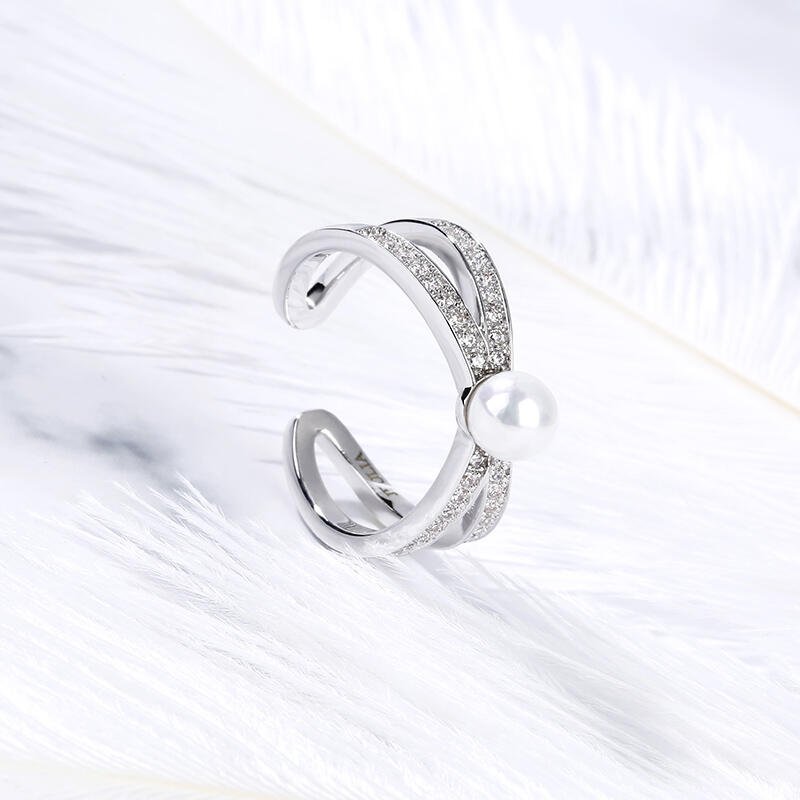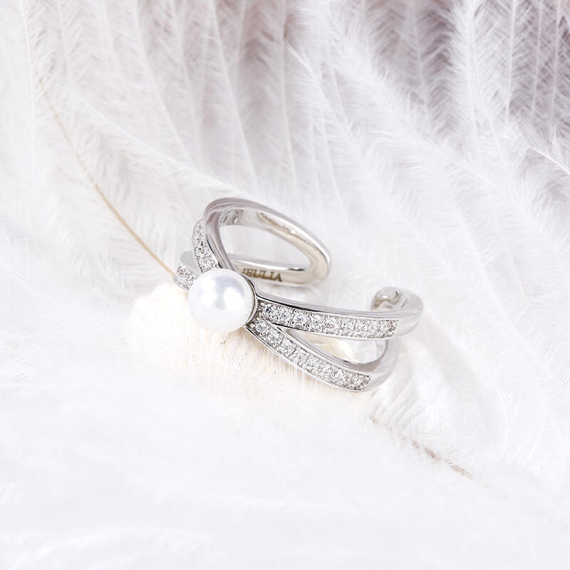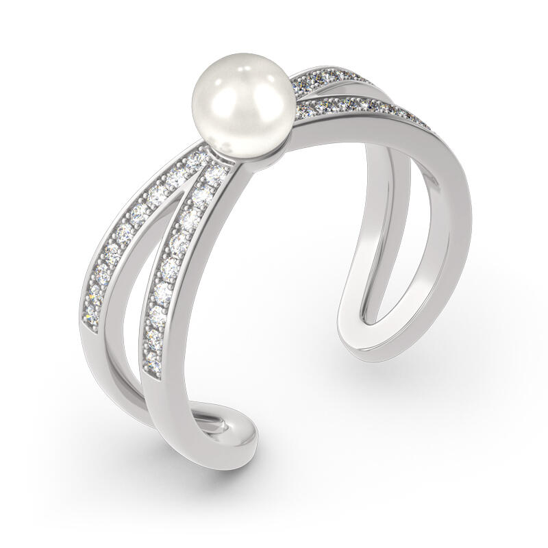 Jeulia Split Shank Cultured Pearl Sterling Silver Ring