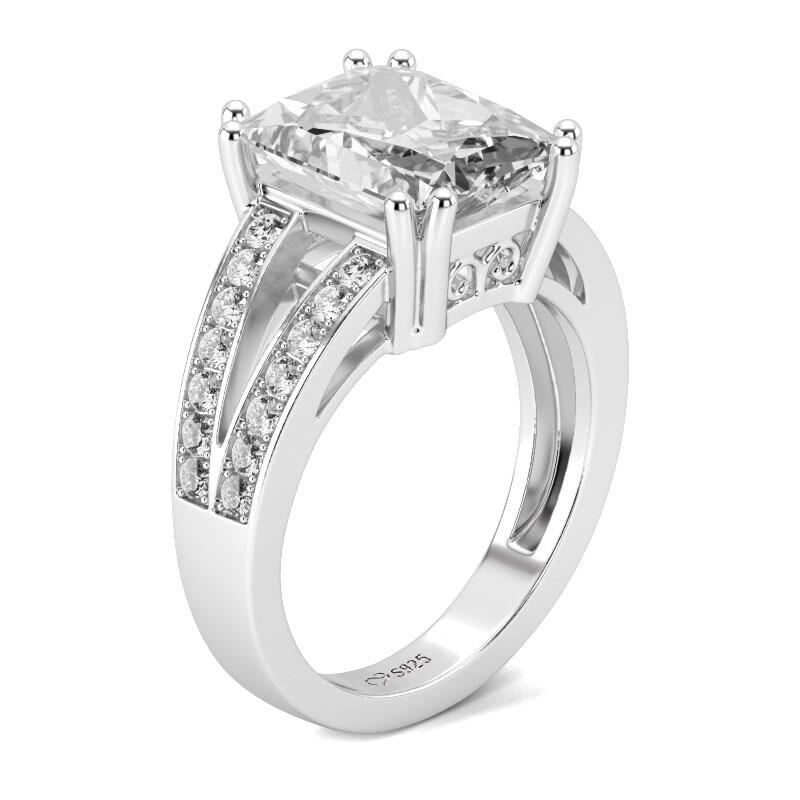Jeulia Split Shank Radiant Cut Sterling Silver Ring