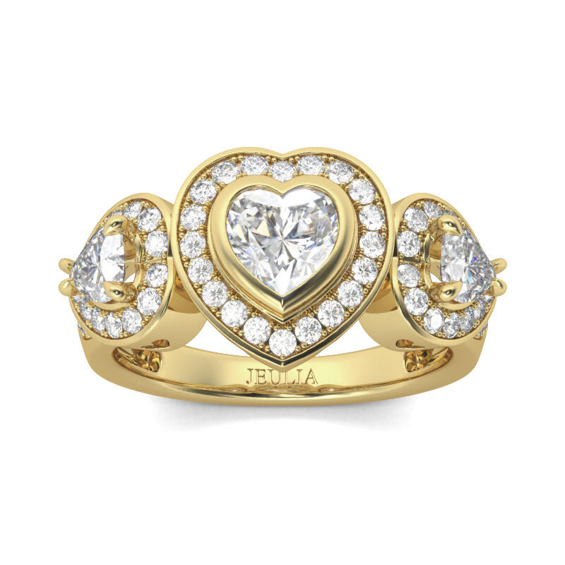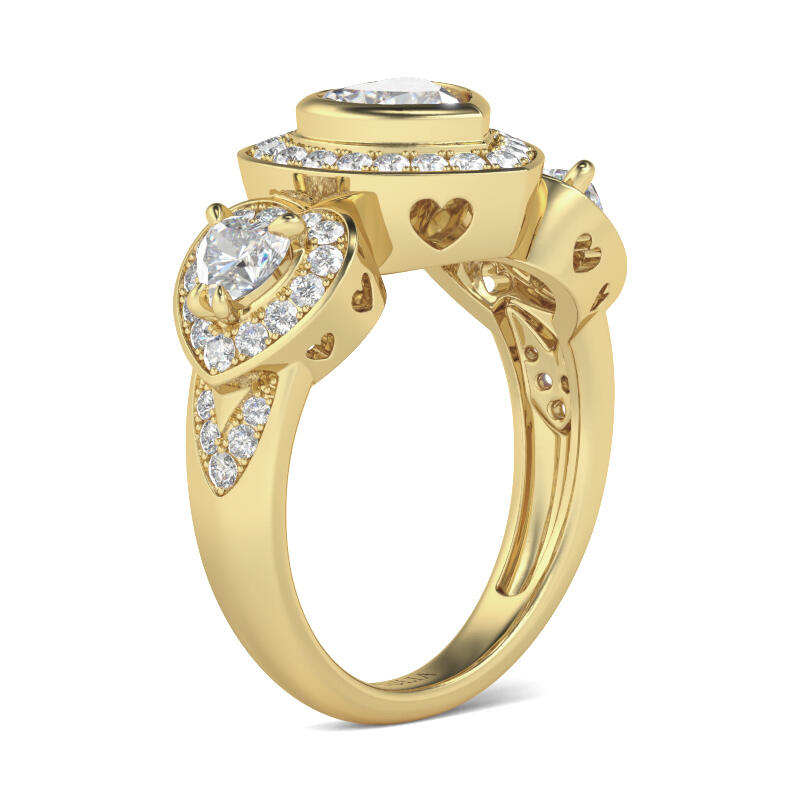 Proclaim your love sincerely, beautifully and proudly with this three stone ring. Exquisite in sterling silver, this fabulous day or evening ready look is centered with a beautiful heart cut center stone flanked on either side by a pear-cut stone. Sparkling stones create a luminous outline around center stone, completing this dazzling fashion piece.