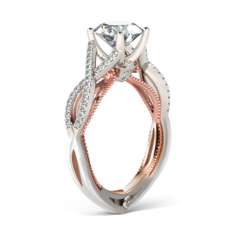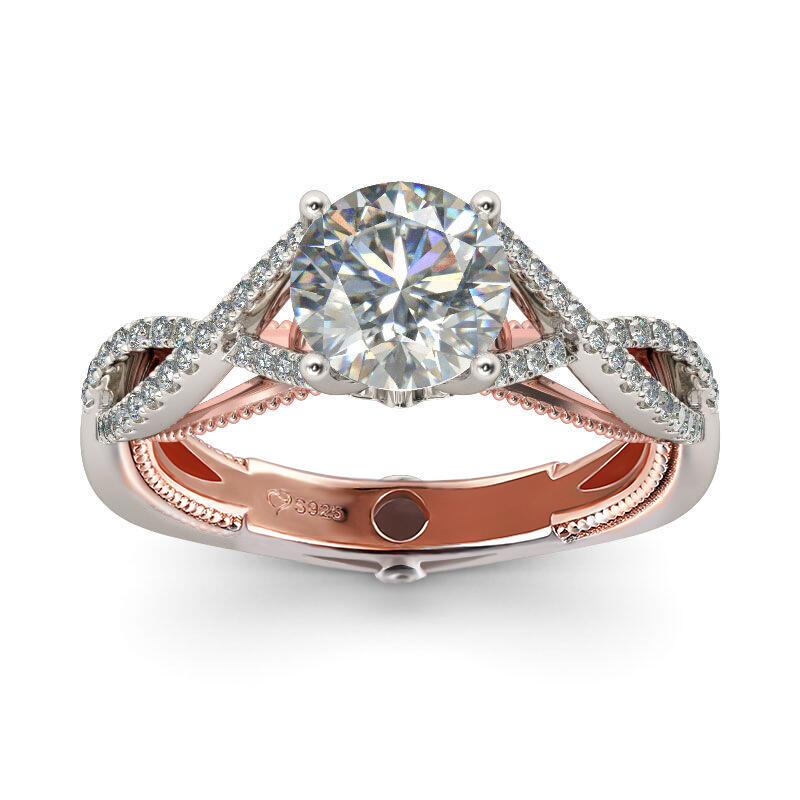 A classic and exquisite look, this engagement ring will capture your heart at first sight. Crafted in sterling silver, this stunning design showcases a round-cut center stone set on twist shank.The crossing shoulders emit exquisite radiance, complementing the sparkle of the center stone.