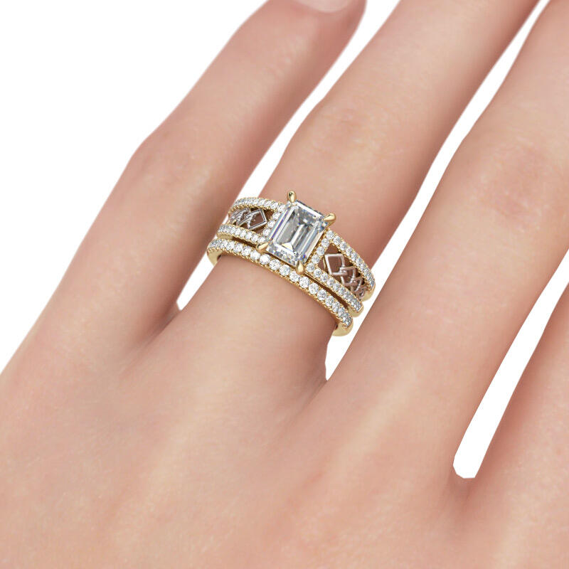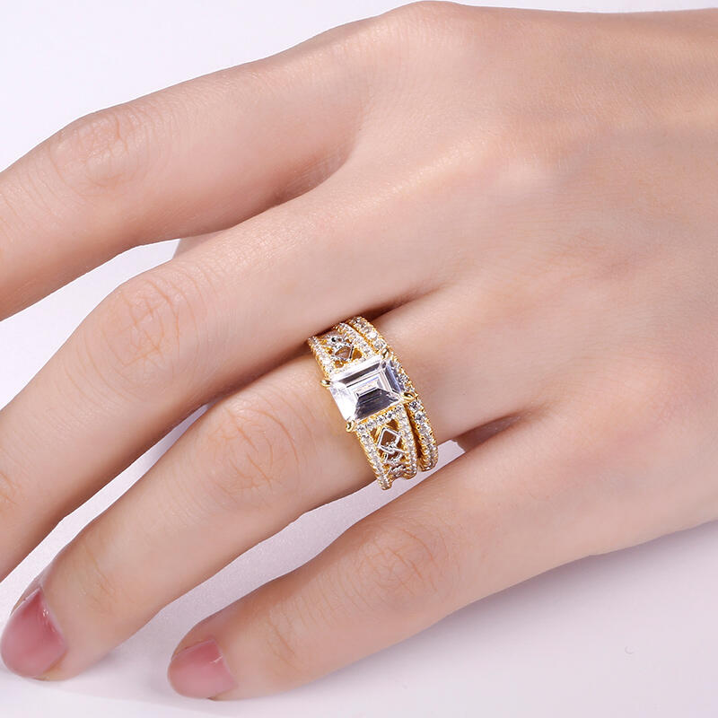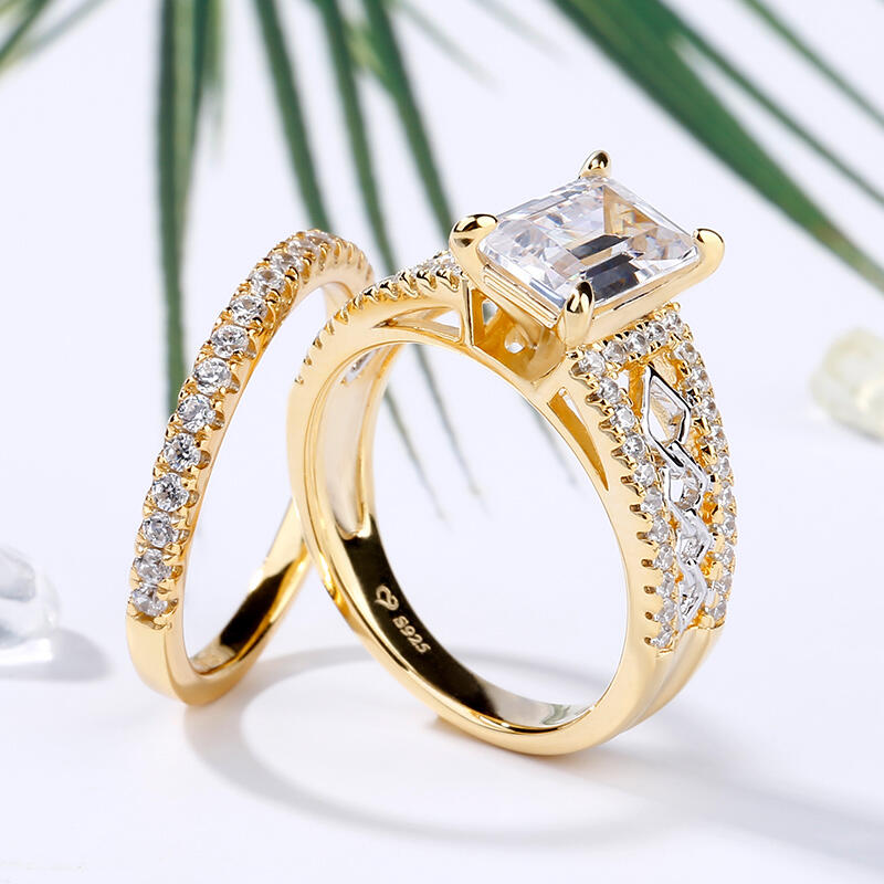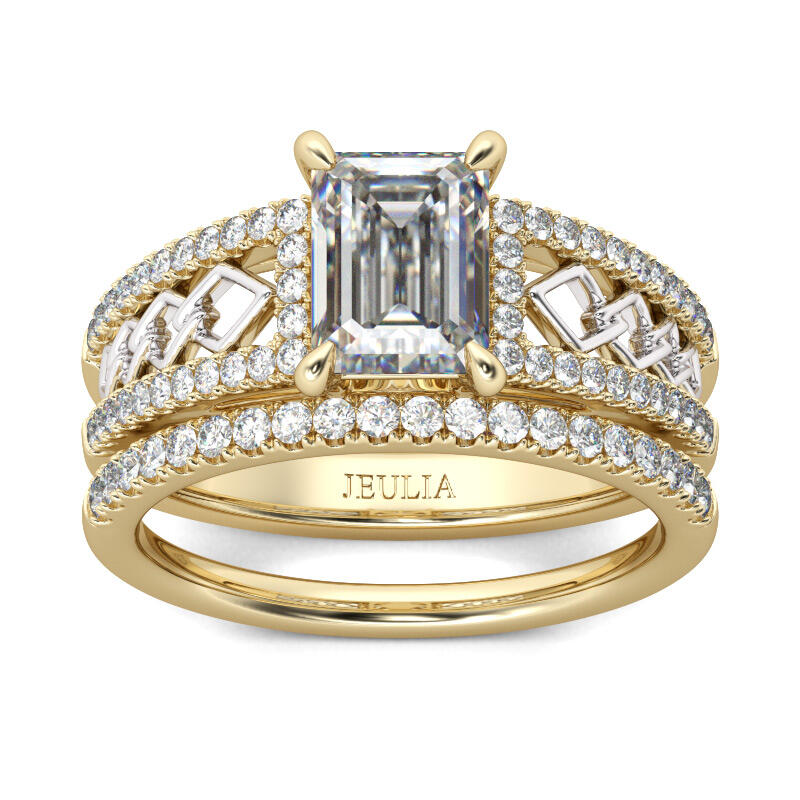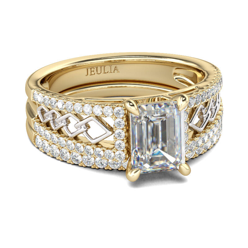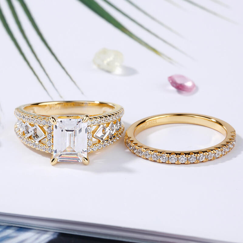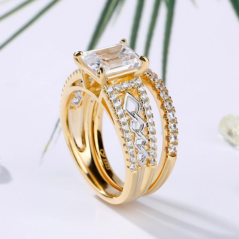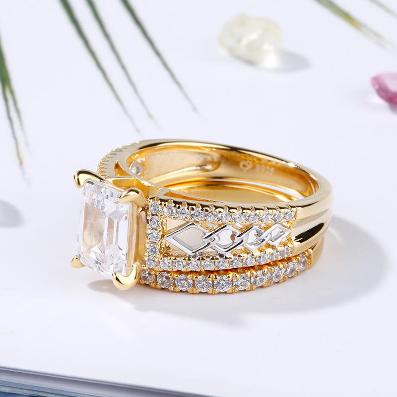 Jeulia Two Tone Emerald Cut Sterling Silver Ring Set