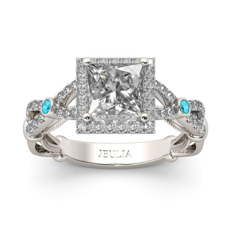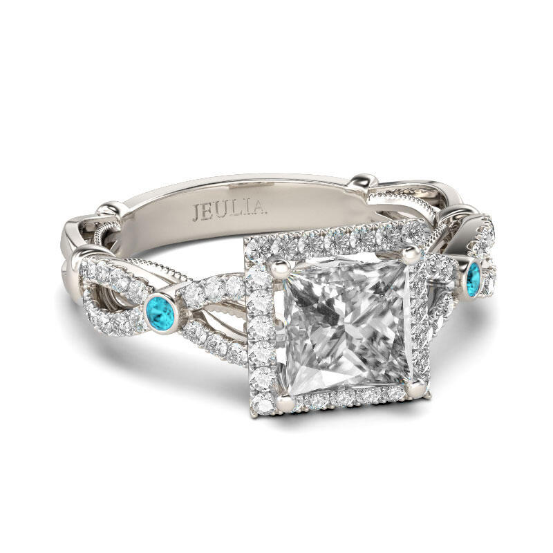 Jeulia Vintage Halo Princess Cut Sterling Silver Ring