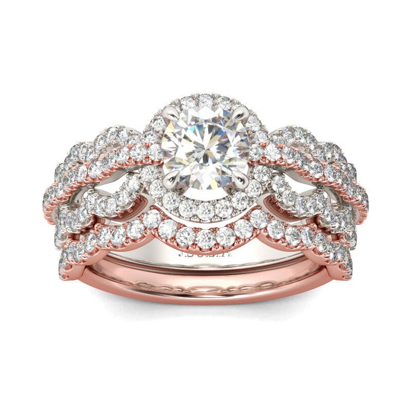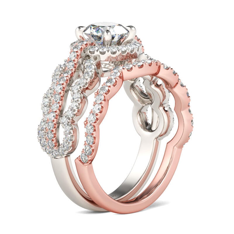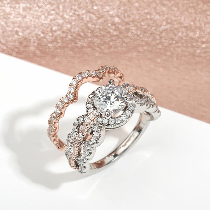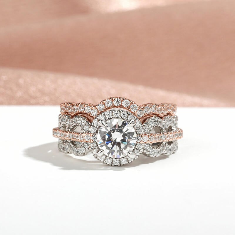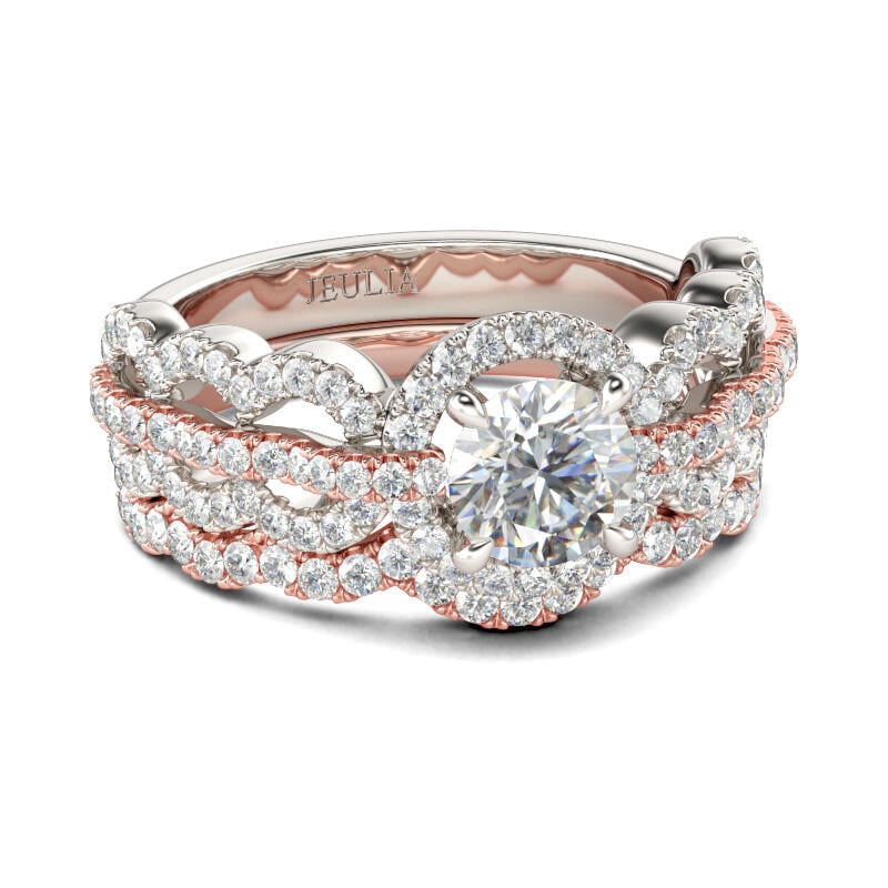 Jeulia Wave Shape Halo Round Cut Sterling Silver Ring Set